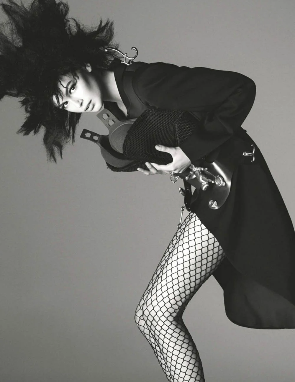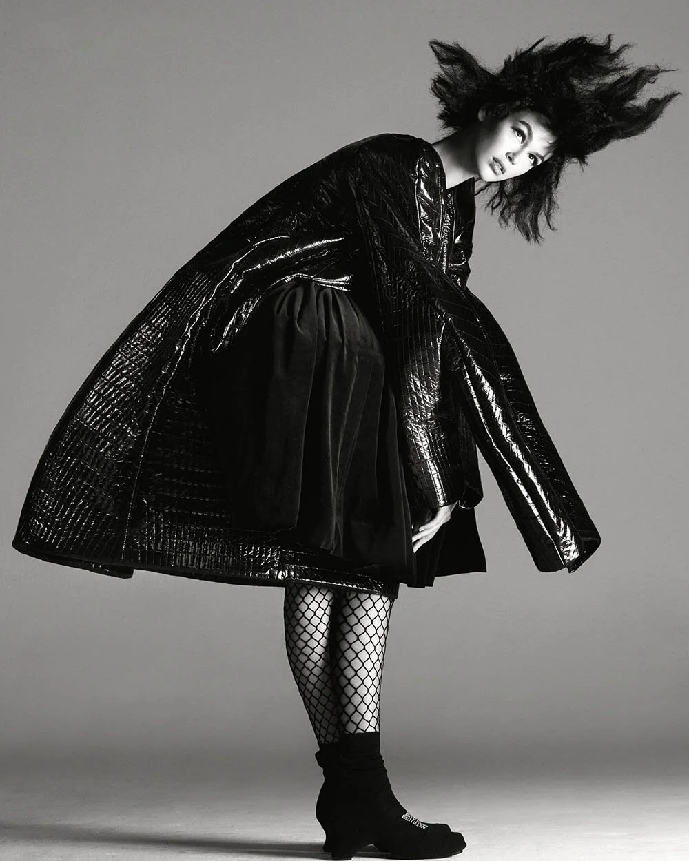 /Rising model Kaia Gerber makes her British Vogue cover debut, lensed by Steven Meisel wearing a bold black and white Valentino jumpsuit for the October 2019 issue. Joe McKenna styles the fashion cover story, dressing Gerber in dramatic, edgy looks from Comme des Garcons.