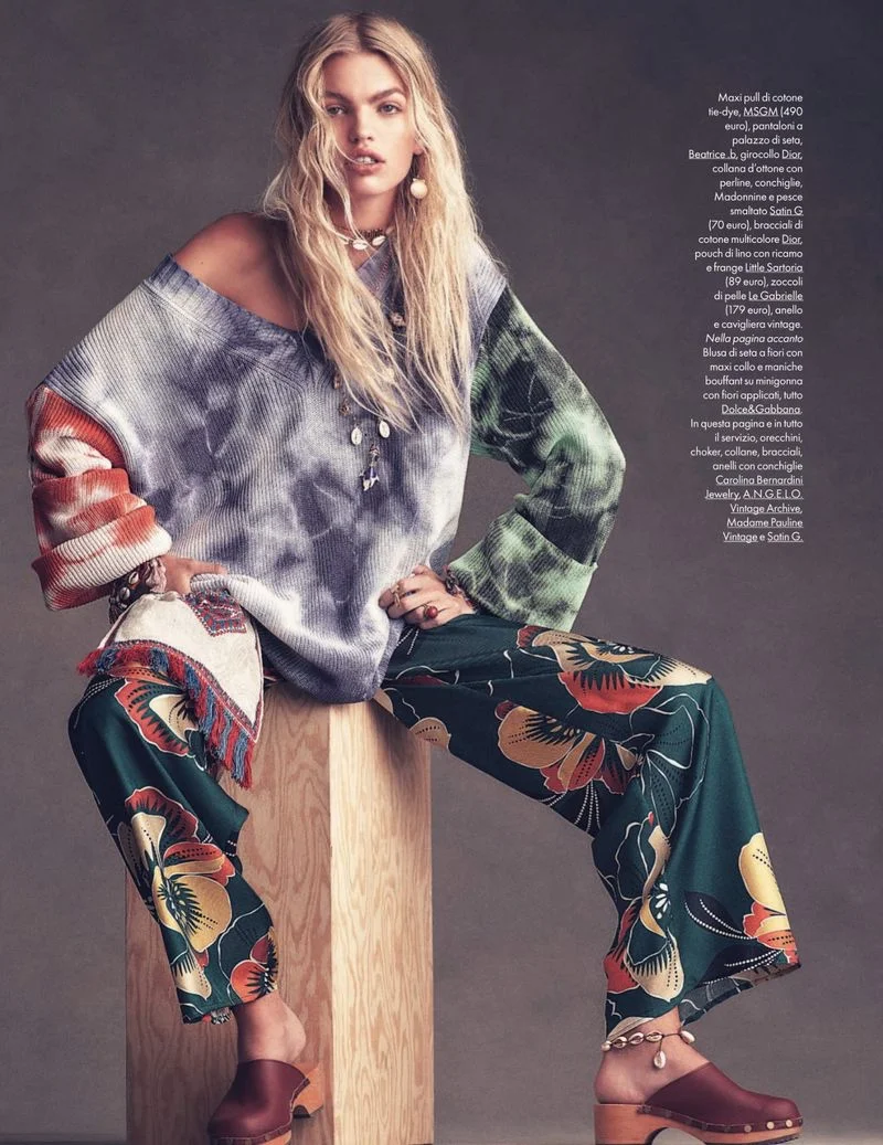 /Top model Daphne Groeneveld is styled by Carola Bianchi in smile-worthy, ‘Flower Power’ designs from Louis Vuitton, Valentino, Michael Kors Collection, MSGM and more. Photographer Andreas Sjodin captures the modern nostalgia that feels so fresh in a troubled world for ELLE Italy’s March 8th issue.