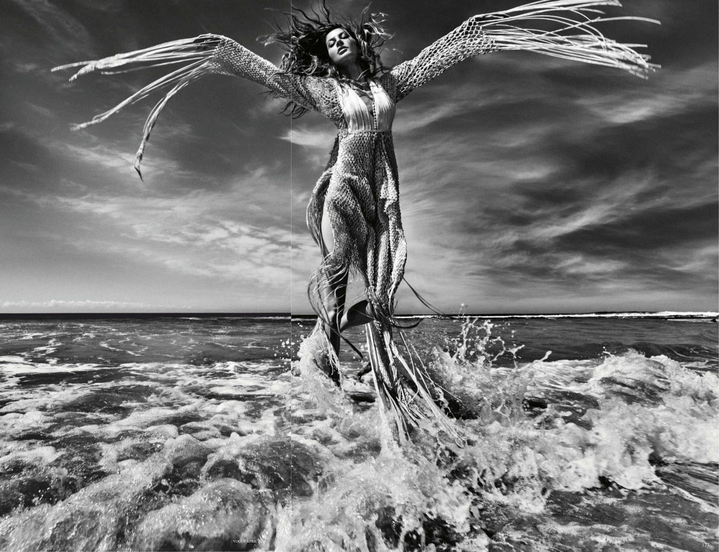 Paul Cavaco styles Gisele, who has a near elemental relationship with nature, the foundation of her environmental activism. And photographers Luigi & Iango captures her as a mythical water goddess ‘Making Waves’ in the pages of Vogue Germany April 2019./ Hair by Luigi Murenu; makeup by Erin Parsons