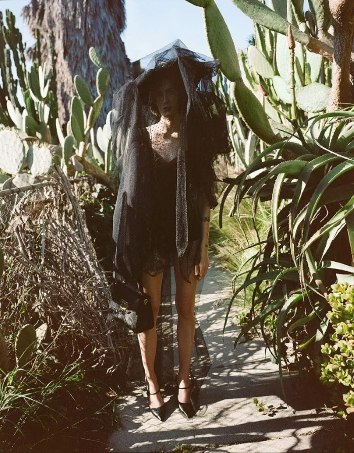 /Model Jane Moseley is styled by Sveta Vashenyak in black widow veiled sensuality lensed by Agata Pospieszynska for Vogue Russia March 2019./ Hair by Amber Duarte; makeup by Natalia Malova