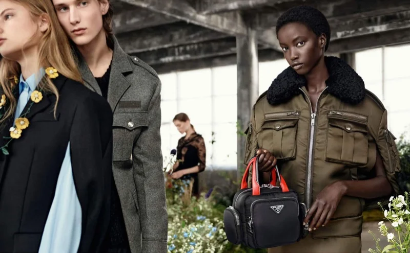 Models Anok Yai, Freja Beha Erichsen, Rebecca Longendyke, Sora Choi and more wear Prada’s military-inspired, unisex uniforms required for the growing fights for rights in our daily lives. The campaign is romantic, yes, but fiercely realistic and quietly confrontational at the same time.
