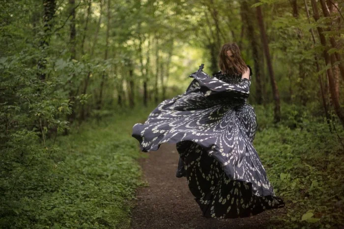 /Model Vaiora Stroganoff is styled by Clement Lomellini as a wild, forest woman — she who has a long, metaphorical and anthropological history of always subverting patriarchy. Clearly, the wild woman cannot be trusted, and her irrational state of being represents a constant threat to western civilization.