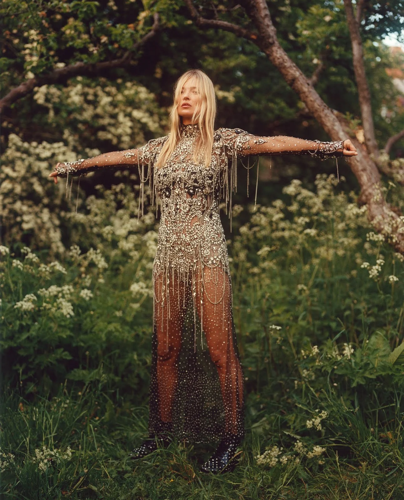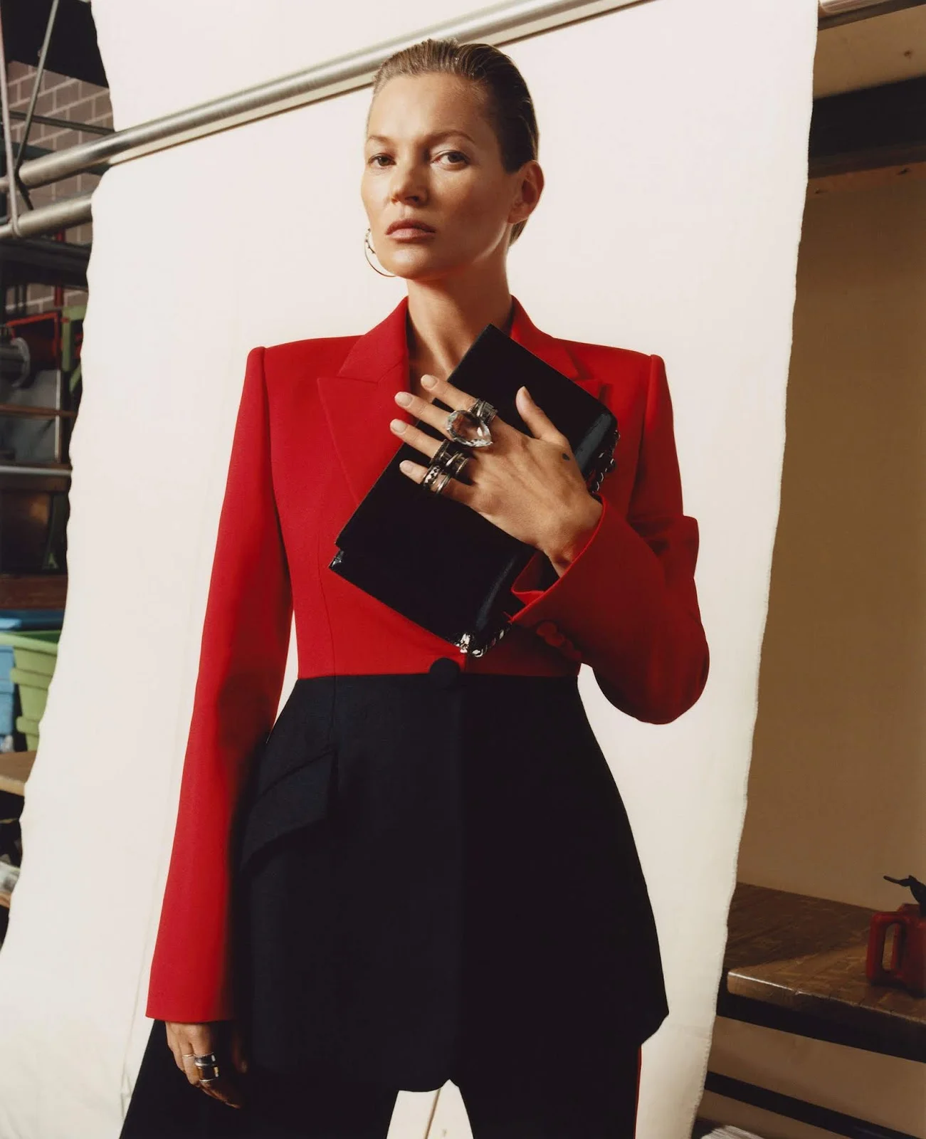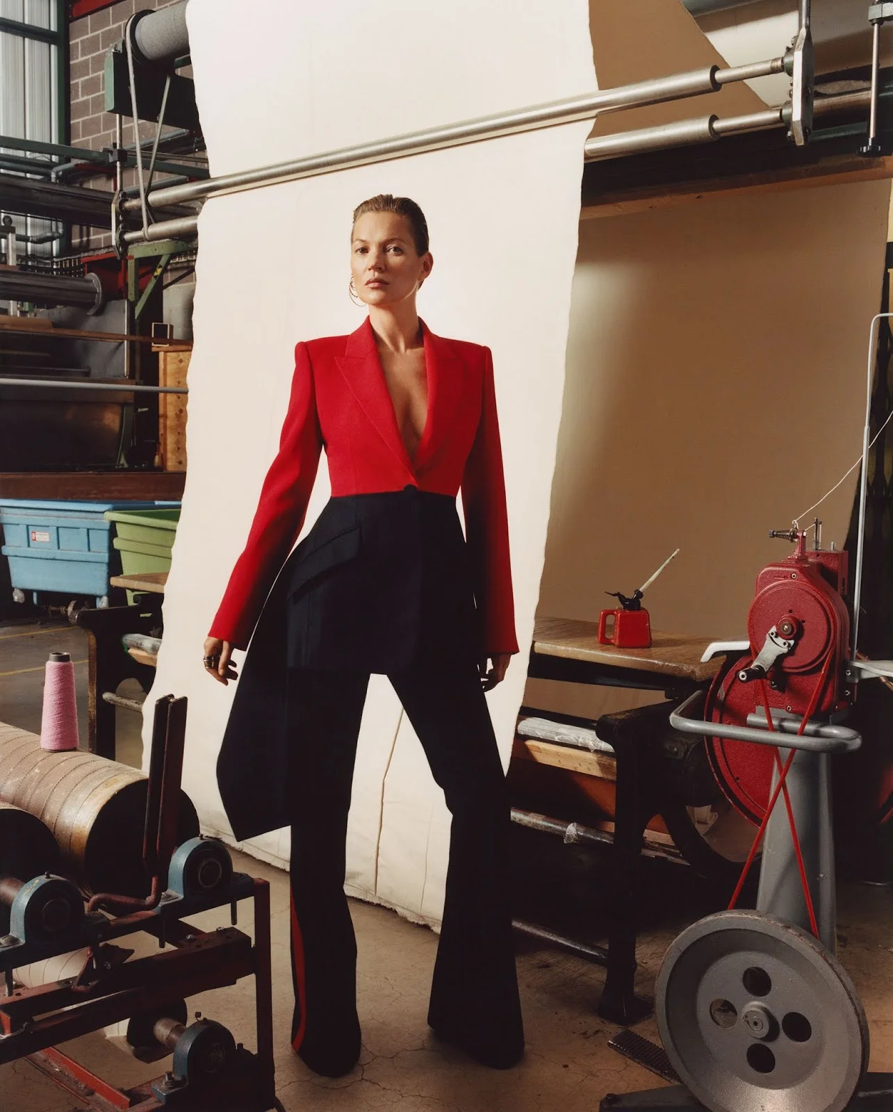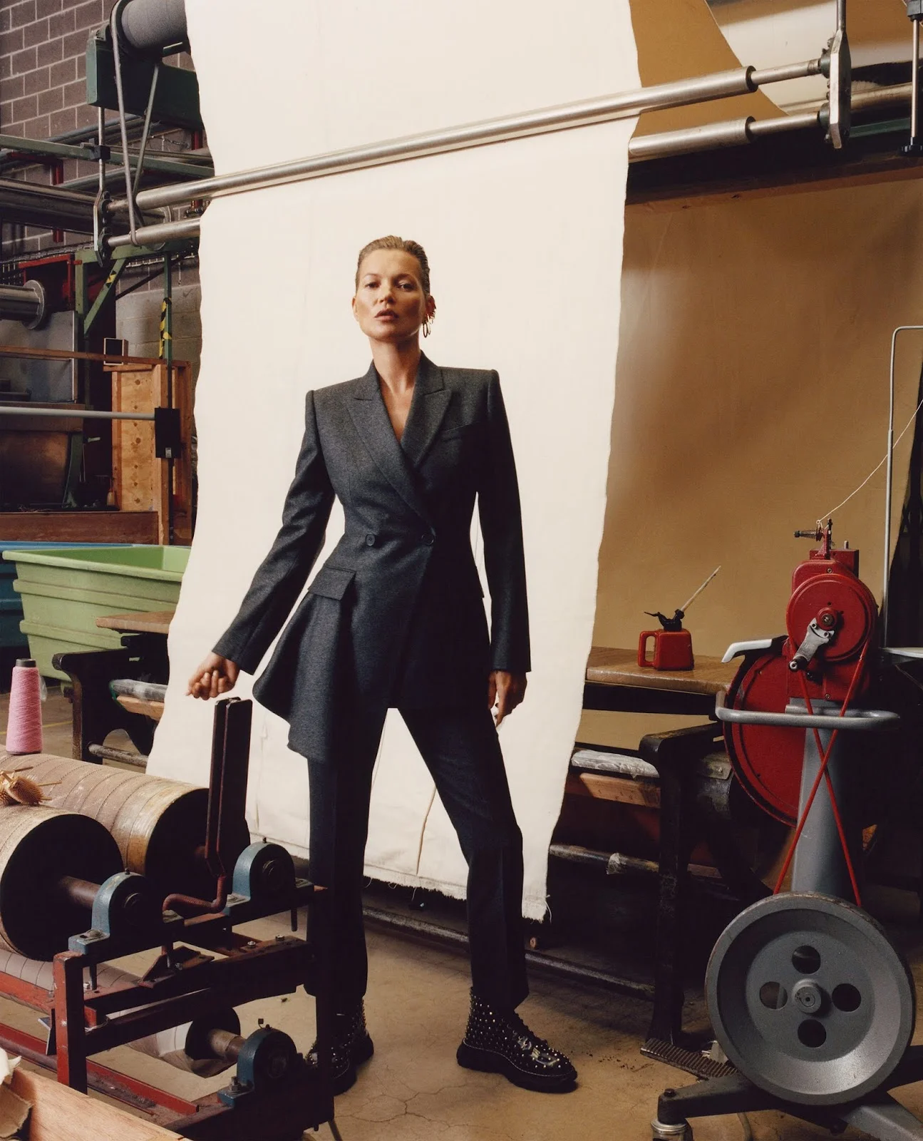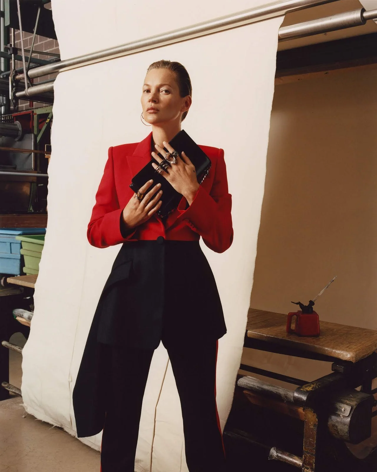 Supermodel Kate Moss is styled by Camilla Nickerson in Alexander McQueen’s Fall 2019 Ad Campaign, lensed by Jamie Hawkesworth./ Hair by Guido Palau; makeup by Dick Page