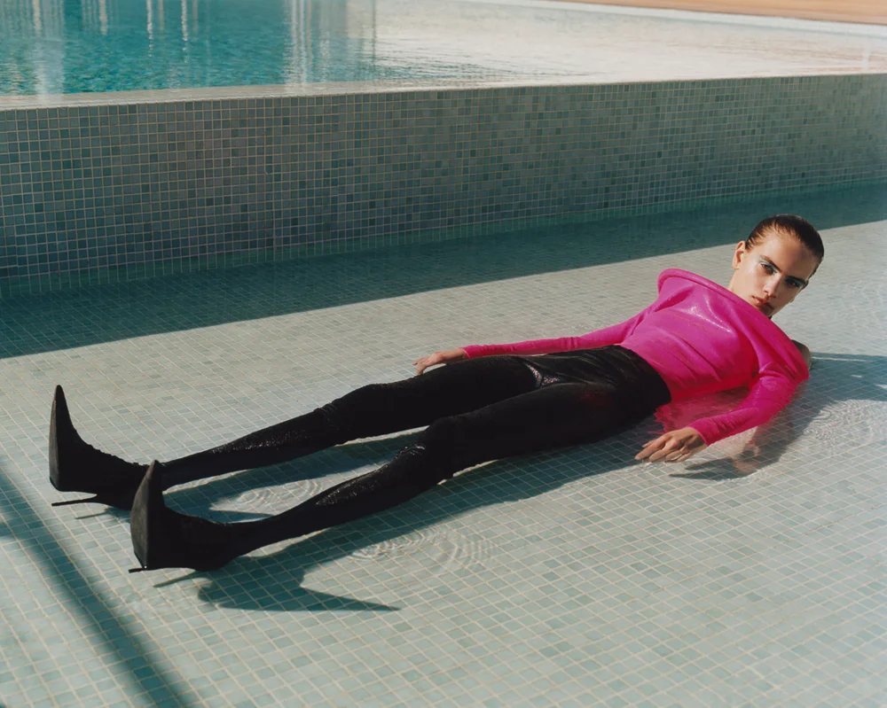 Danish model Nina Marker is styled by Dogukan Nesanir in ‘All Aboard the X Shore!’, an eco-friendly 100% electric boat. Benjamin Vnuk flashes Nina for V Magazine 120. / Hair by Kalle Eklund; makeup by Patrick Glatthaar