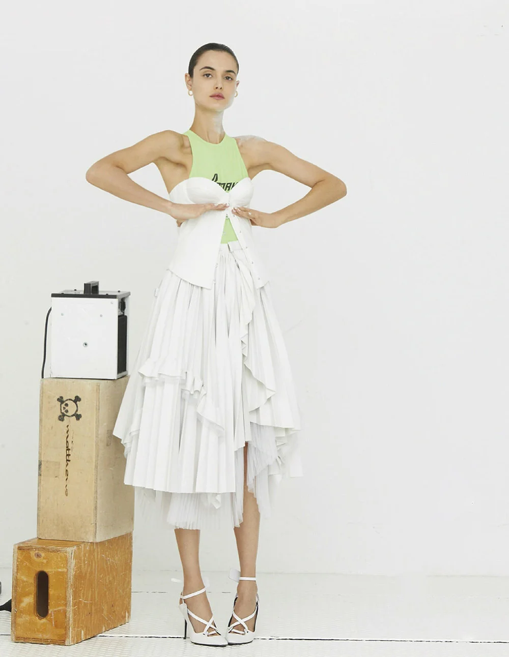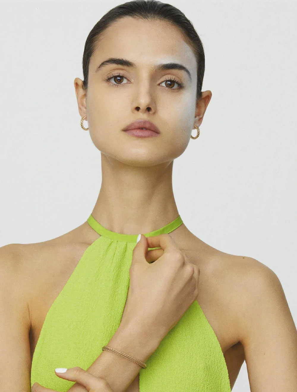 Model Blanca Padilla covers the July 2019 issue of ELLE Russia. Lilya Simonyan chooses primarily white and acid green hues from Alexander Terrrrekhov, Emporio Armani, Givenchy, Louis Vuitton, Off-White and more for studio images by David Dunan./ Hair by Tobias Sagner; makeup by Nicolas Degennes