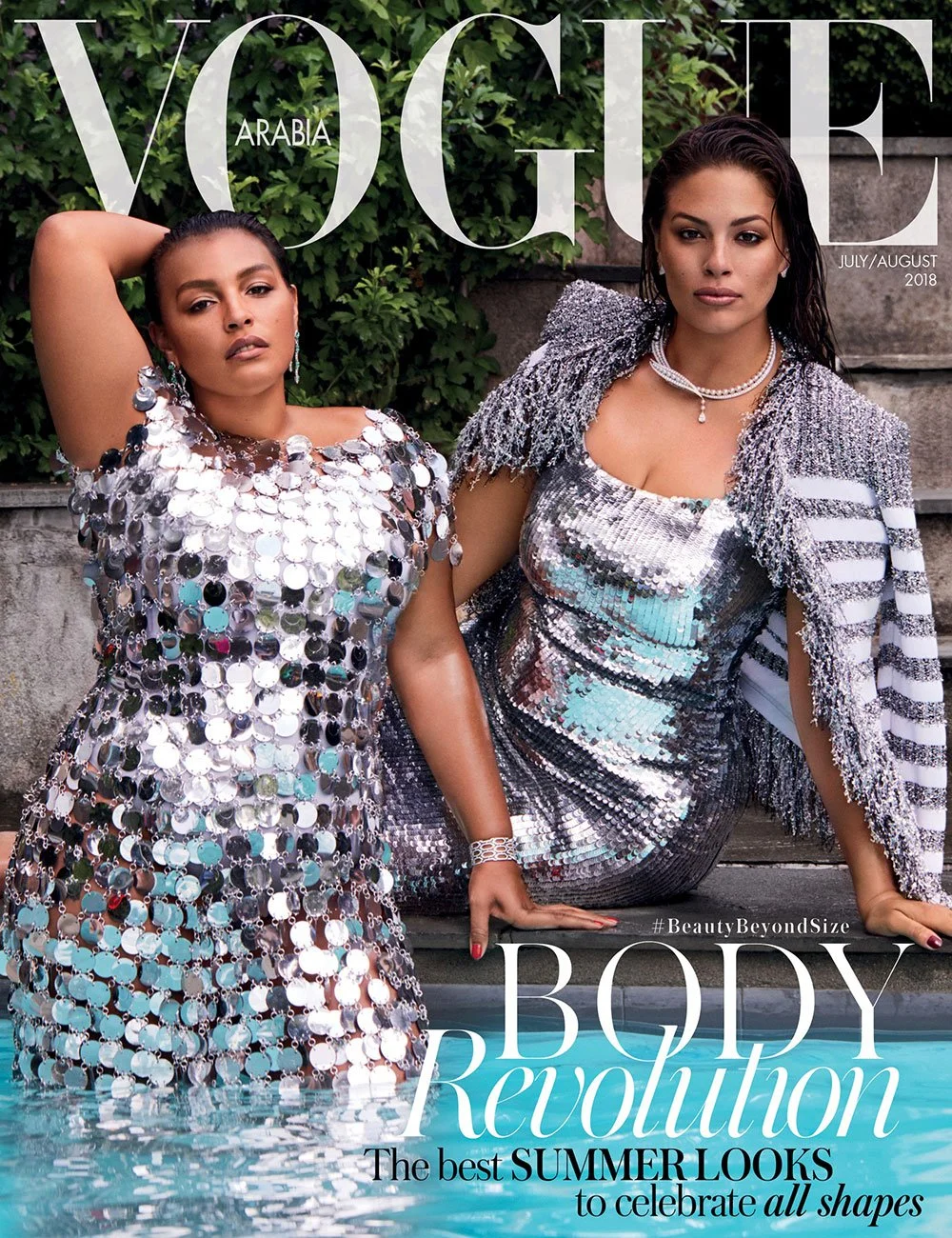 /Vogue Arabia’s July/August 2018 issue delivered a ‘Body Revolution’ fashion story inspired by the sea. Top model Ashley Graham — who was then the 10th highest-paid model in fashion — was joined by rising model Paloma Elsesser.