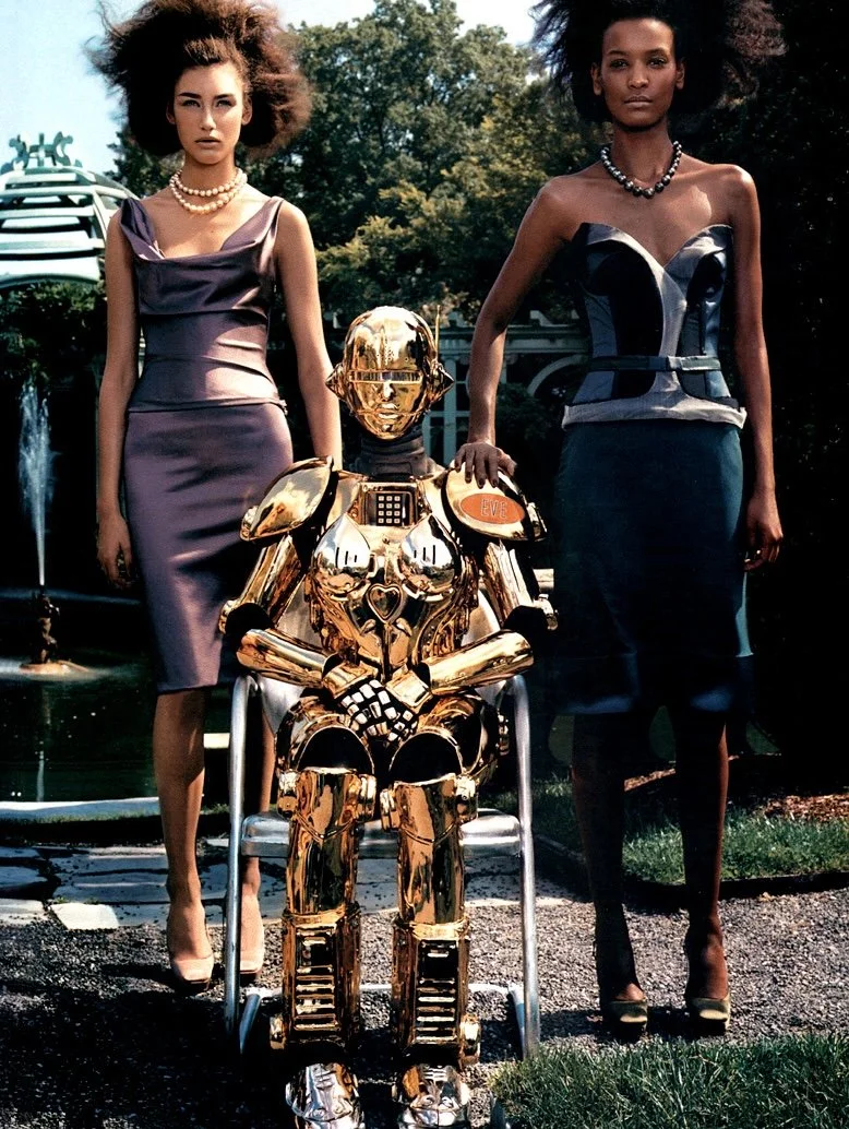 AOC dials back to 2003, convening models Elise Crombez, Natalia Vodianova, Liya Kebede and Eugenia Volodina in a fashion story ‘The Total Lady’. Photographer Steven Klein captured the quartet, styled by Grace Coddington for Vogue US September 2003./ Hair by Orlando Pita; makeup by Polly Osmond