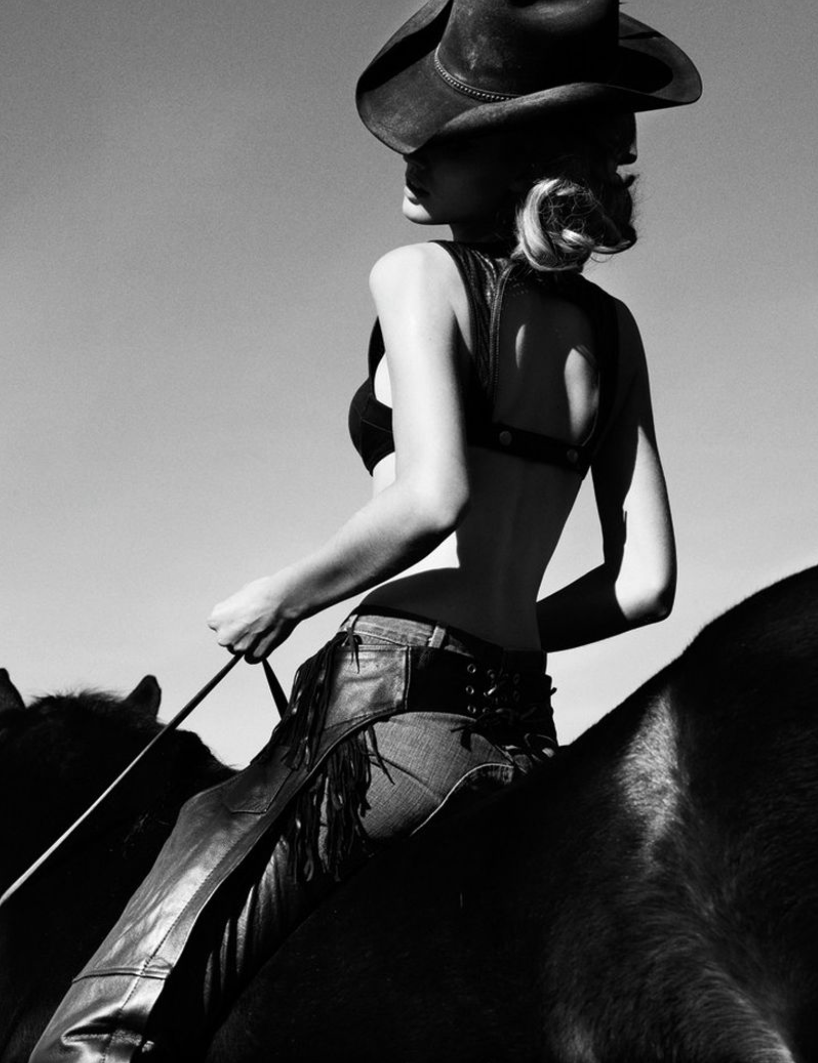 Top model Toni Garrn took a sensual stand in Vogue Germany March 2009, styled by Katie Mossman in ‘Mild West’, the March coverstory lensed by Greg Kadel./ Hair by Franco Gobbi; makeup by Mariel Barrera