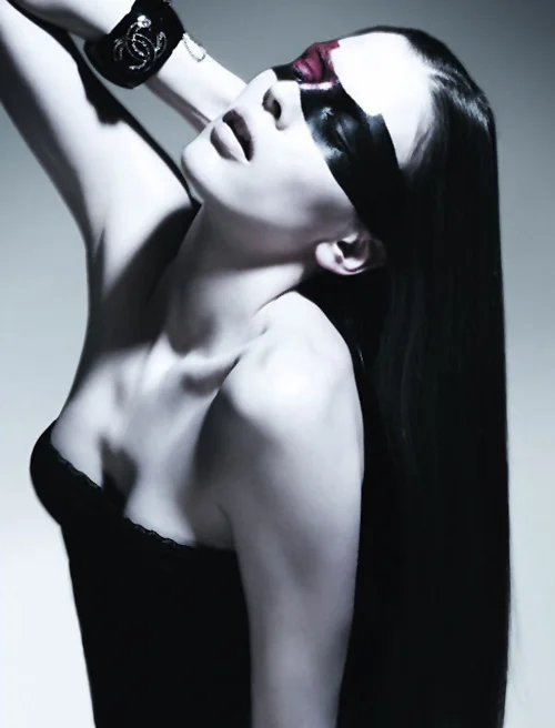 /Adina F expresses a hard, dark and somewhat detached sensuality lensed by Perry Curties for 125 Magazine’s Issue #17, April 2011 focused on religion. Adina is holding a flogger but with no marks on her back, she may use it on someone else, and not herself as is recommended for pious women.