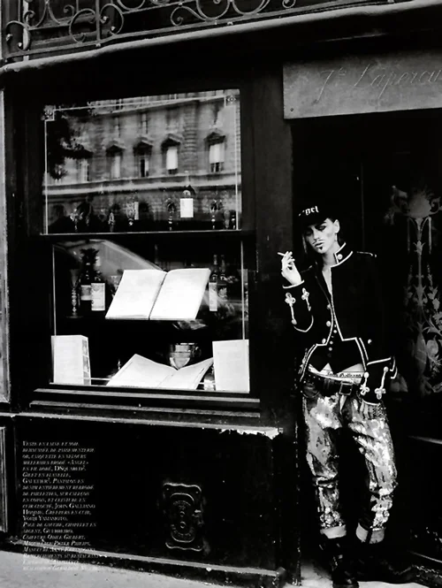 The irony of Sasha Pivovarova’s portrayal of John Galliano in ‘Dans la peau de John Galliano’, styled by Emmanuelle Alt and lensed by Peter Lindbergh for Vogue Paris January 2007 isn’t lost for a gender-bending moment.