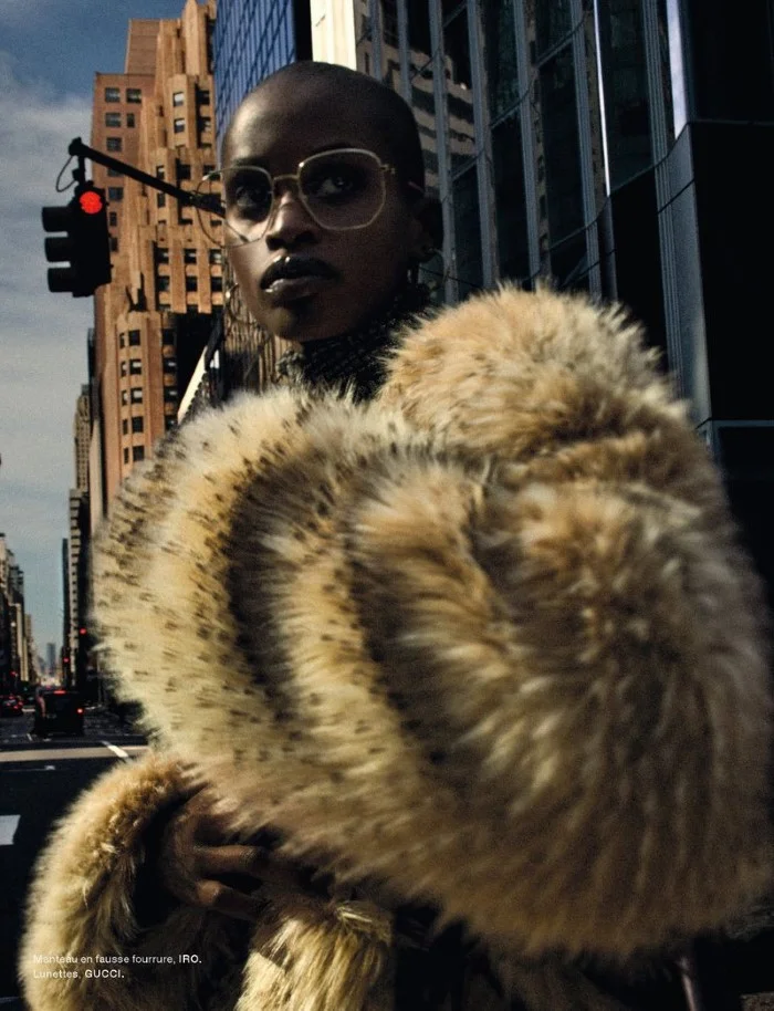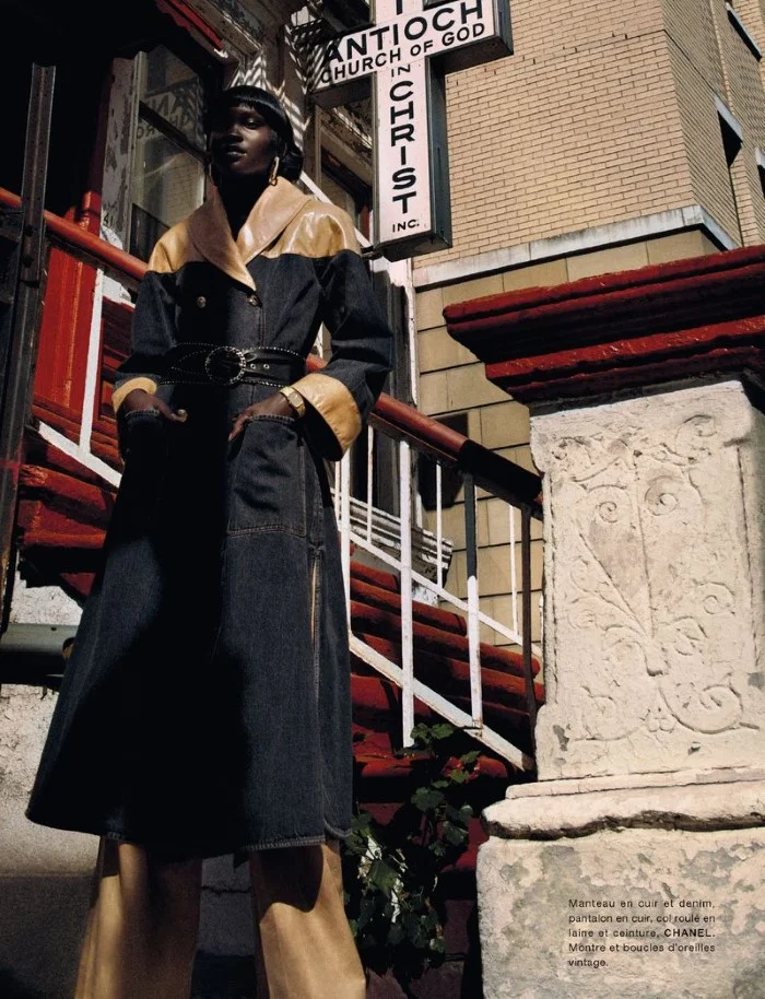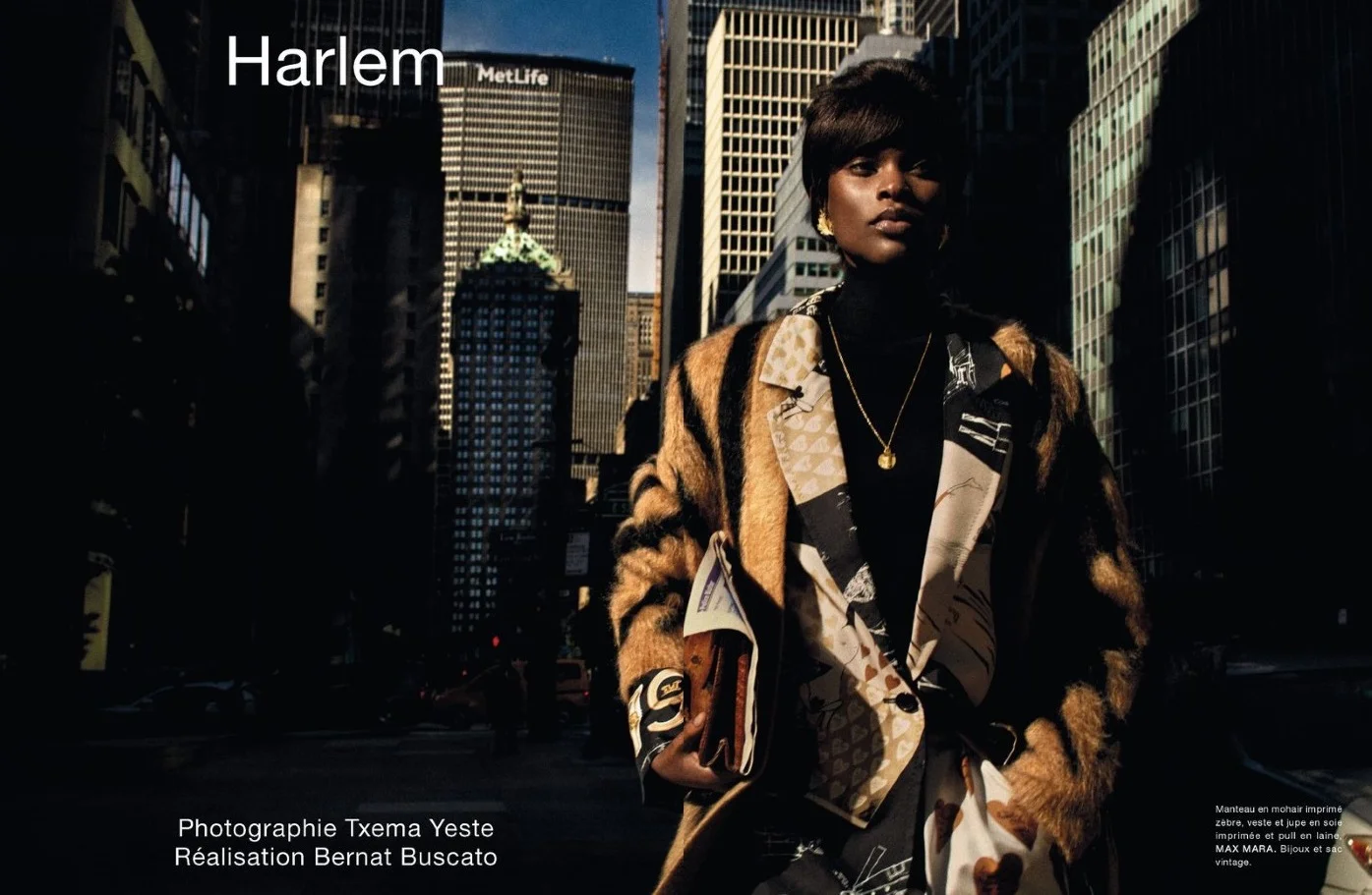 /Top photographer Txema Yeste turns his eye to Harlem with a grand cast including Achenrin Madit; Ayobami Okekunie, Barbara-Lee Grant, Eniola Abioro, Jonny Brown, Luisana Gonzalez, Malle Gueye, Nella Ngingo, Nisaa Pouncey, Riley Montana, and Tianna St. Louis. Bernat Buscato styles the ensemble for Numéro France October 2019. / Hair by Joey George; makeup by Tyron Machhausen