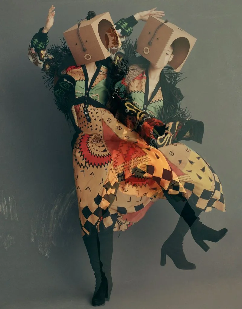 /Model Yoon Young Bae is styled in modern artisan style with heritage roots for 'Un Ballo in Maschera' (A Masked Ball), the 1859 opera in three acts by Giuseppe Verdi. Photographer Bosung Kim is behind the lens for Vogue Korea September 2018./ Hair by Ji Sun Han; makeup by Kim Jihyun