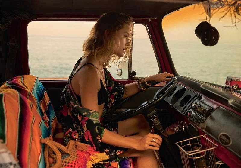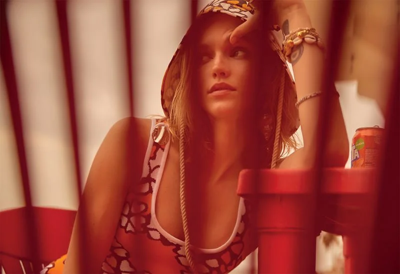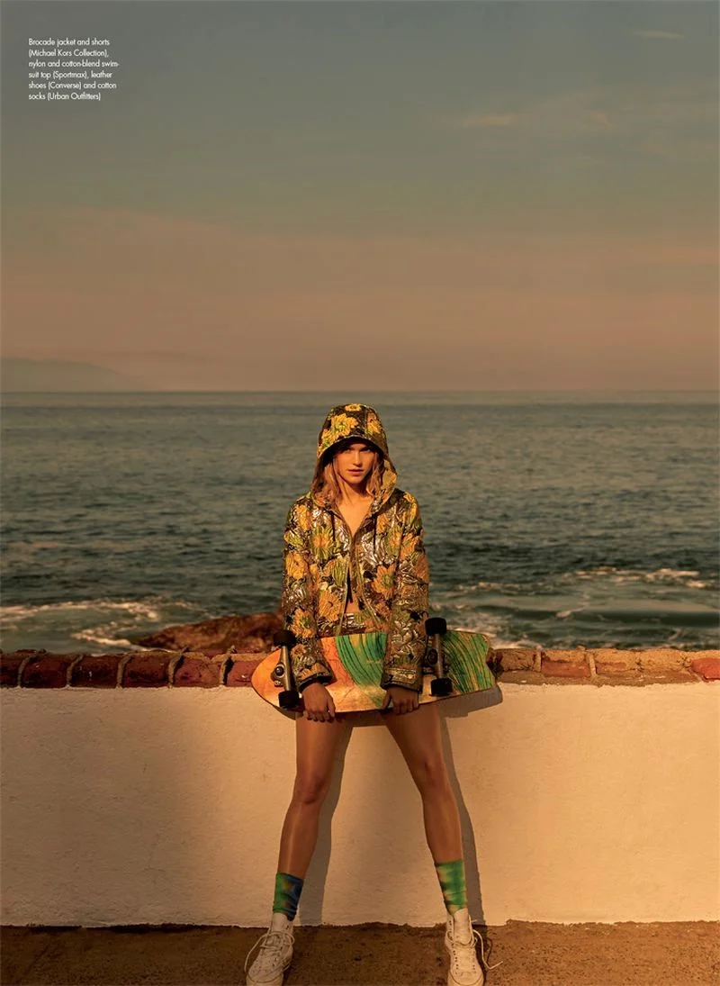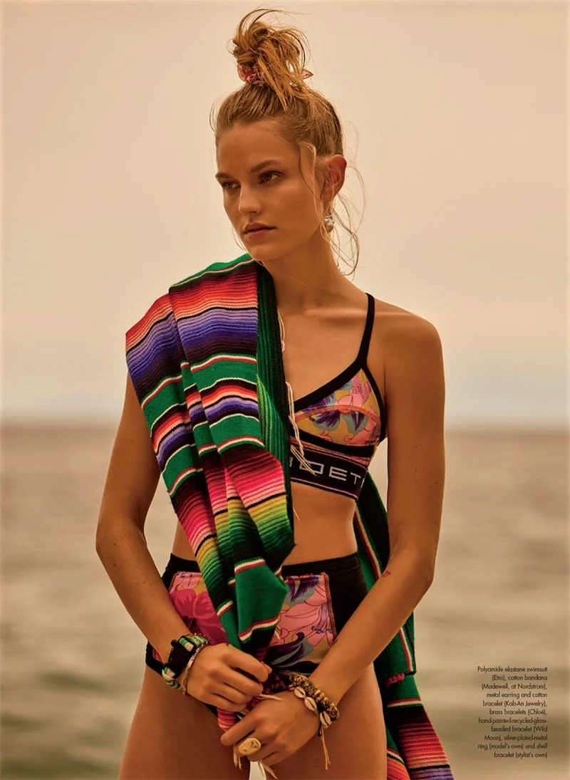 Model Clair Westenberg wears surf-loving, summer casual looks styled by Corey Ng. Photographer Max Abadian is behind the lens, flashing Clair in ‘Hang Ten’ for ELLE Canada June 2019.