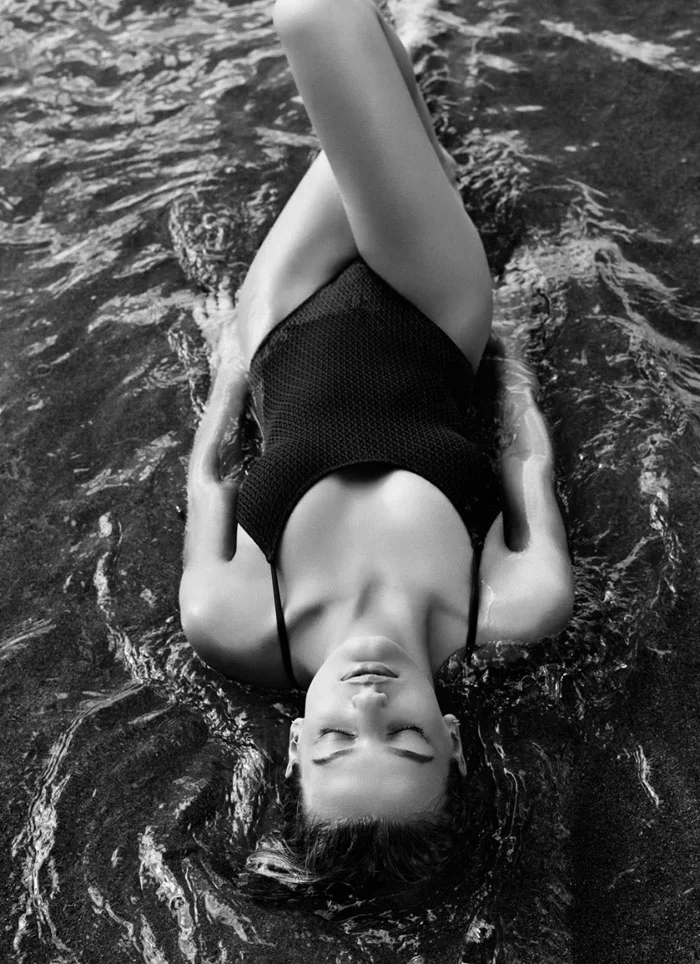 Model Bregje Heinen is a sensual beach babe, styled in a mix of one-piece and two-piece swimsuits by Alessandra Steinherr. Derek Kettela captures seaside action for Glamour UK June 2015./ Makeup by Fiona Stiles