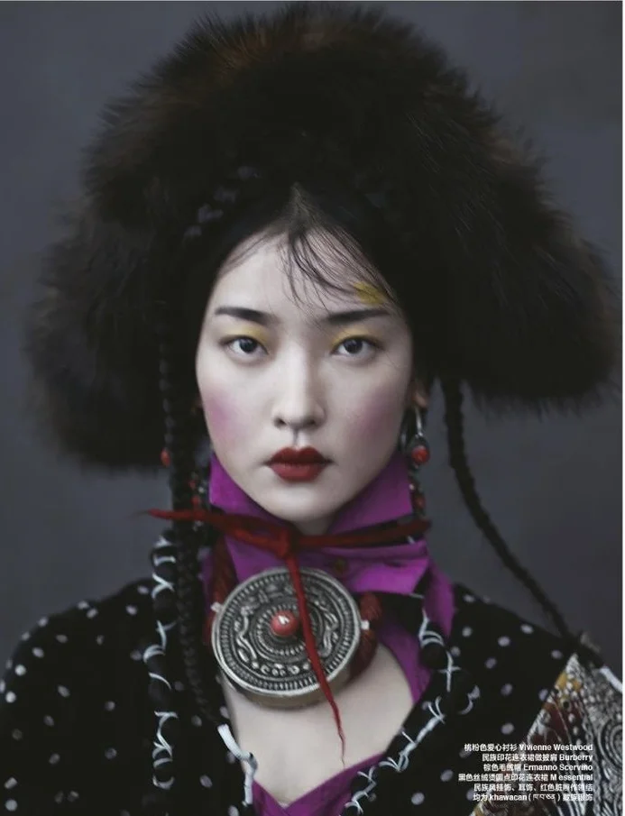 Chinese supermodel and actor Du Juan graces the pages of Harper's Bazaar China's October issue. Du Juan is styled by Xiao Mu Fan in 'Whisper of Tibet' with images by Yin Chao./ Makeup by Sun Qi; hair by Bon Fan Zhang