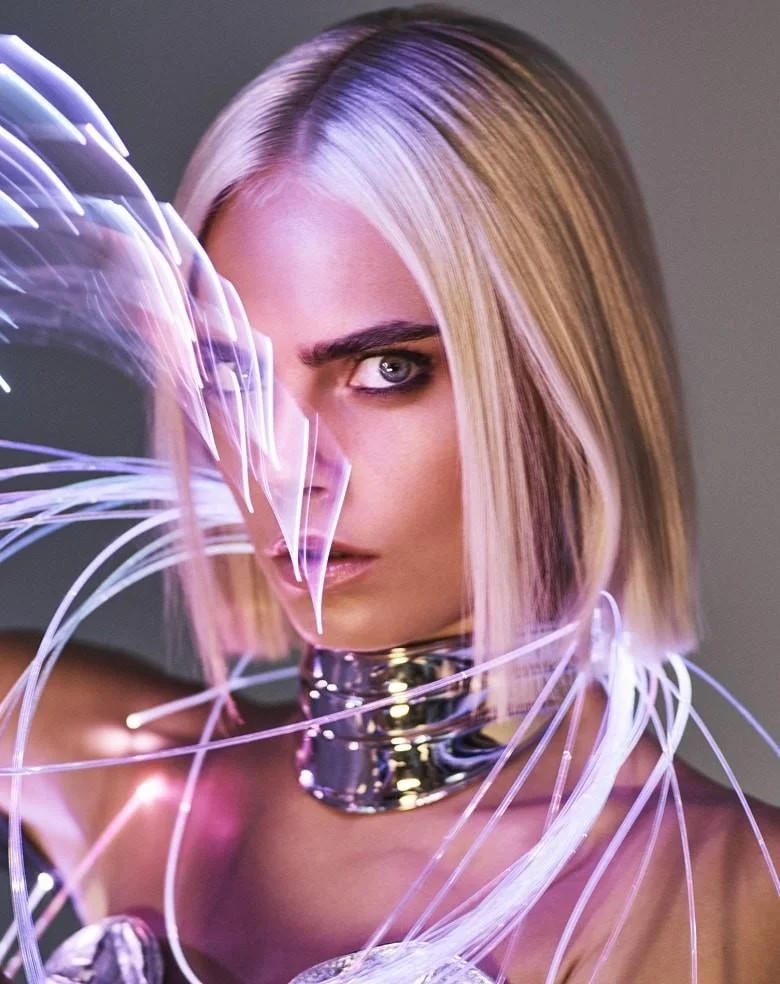 /Talent Cara Delevingne defines futuristic sex goddess in GQ UK's August 2017 cover story.Teddy Czopp styles Cara in hot images by Mariano Vivanco in advance of her first blockbuster role in Luc Besson's sci-fi spectacular 'Valerian and the City of a Thousand Planets'./ Hair by Oliver Schawalder; makeup by Sabrina Bedrani