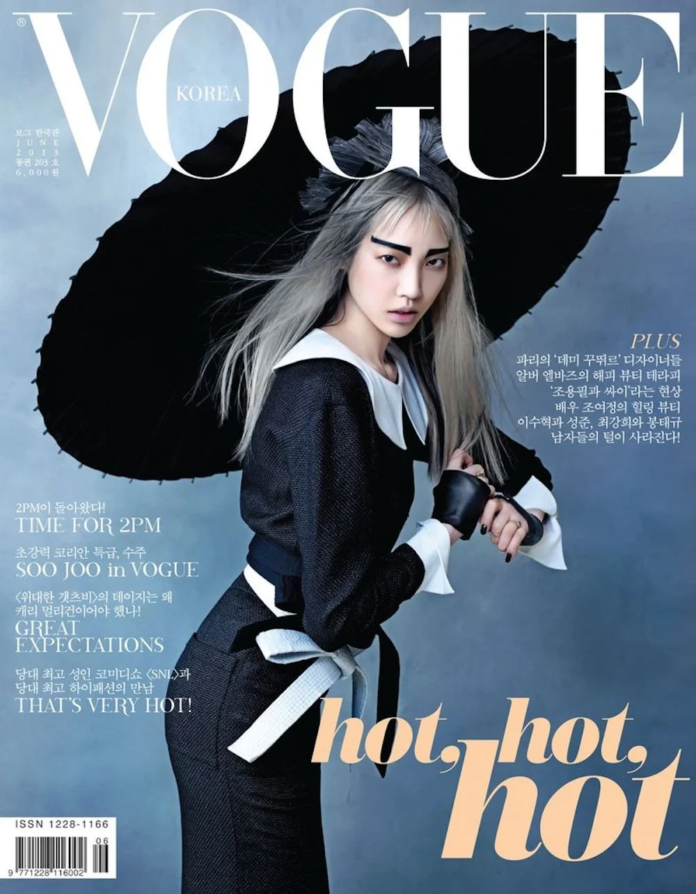 In 2013, up and coming model Soo Joo graced the cover of Vogue Korea for the first time. Photographed by Hyea W Kang, the fierce-undertone fashion story “Martial Arts” appeared in the June 2013 issue.