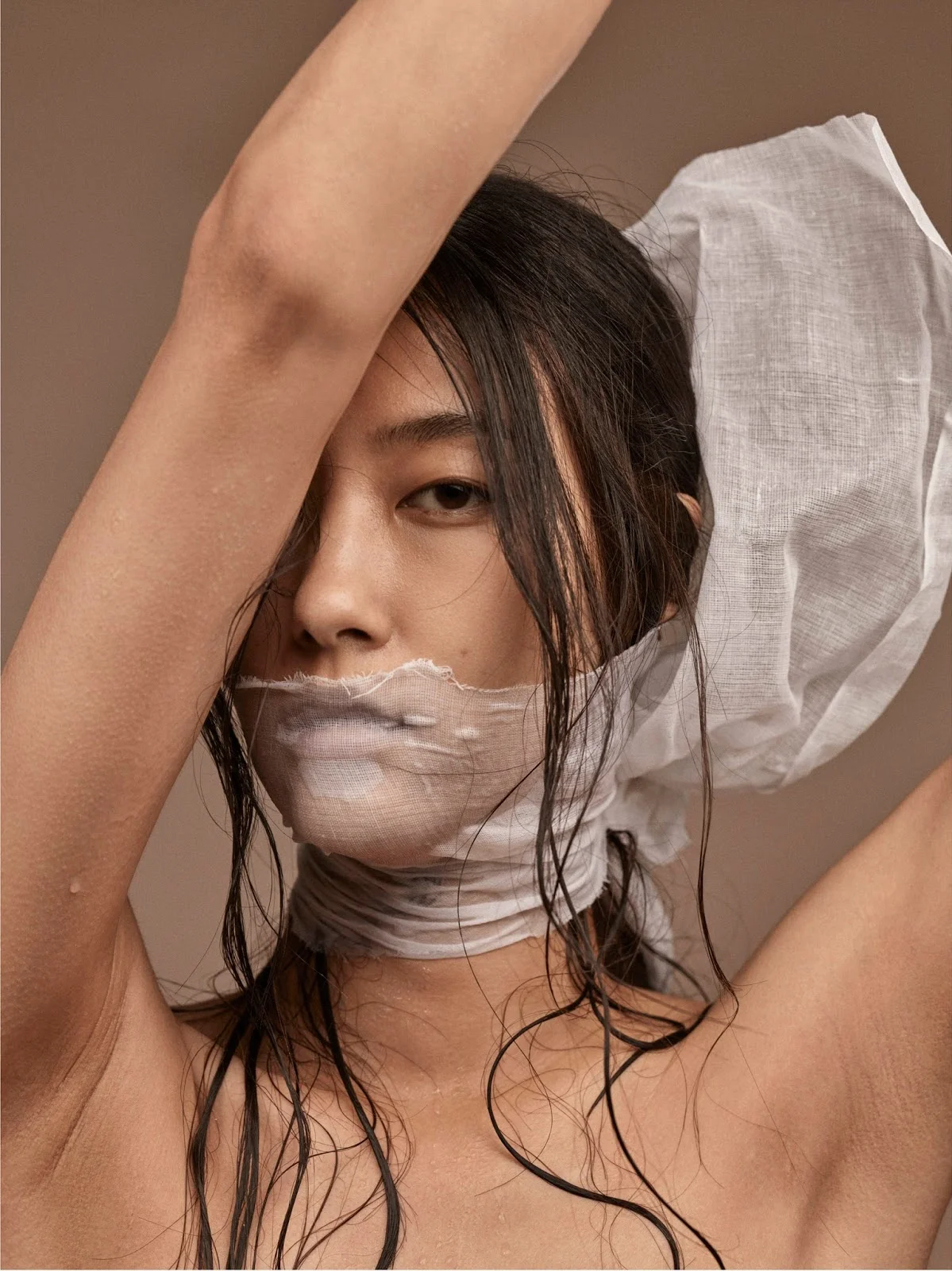 /Model Ji Hye Park fronts 'Mask Game' a beauty treatment styled by Joanna Schlenzka. Photographer Jem Mitchell is in the studio for Vogue China November 2016./ Hair by Sam Hillerby; makeup by Maxine Leonard