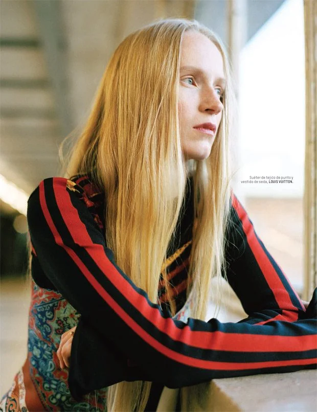 /Norwegian model Jenny Sinkaberg fronts the November issue of L'Officiel Mexico. Stylist Katy Lassen chooses a wide assortment of boho looks from Louis Vuitton, Haizhen Wang, Victoria Beckham, Gucci, Celine, Prada, Julian Zigerli, Suno, Orange Culture, Uribe, Xu Zhi, Toga, Ganni, Erdem, Calvin Klein Collection and more for images lensed by Wai Lin Tse./ Makeup by Linda Anderson; hair by Jose Quijano