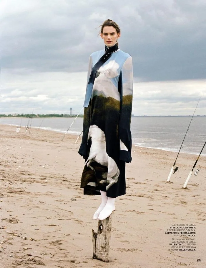 /Model Lena Hardt is styled by Catherine Newell-Hanson in 'The Gait', lensed by Tanya & Zhenya Posternak for Vogue Russia August 2017./ Hair by Tamas Tuzes; makeup by Cyndle Komarovski