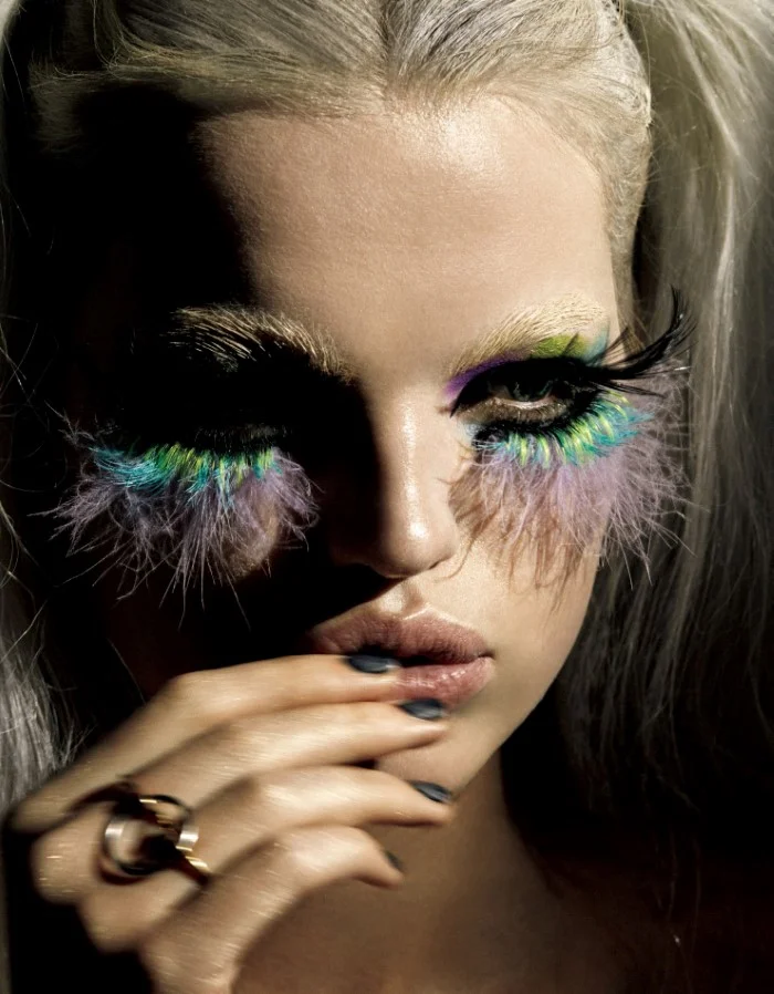 /Top model Daphne Groeneveld fronts 'Manga Mirror', wearing bold makeup courtesy of Marla Belt. Andrew Mukamal styled Daphne in images by David Dunan for Vogue Japan March 2016./ Hair by Kayla Michele
