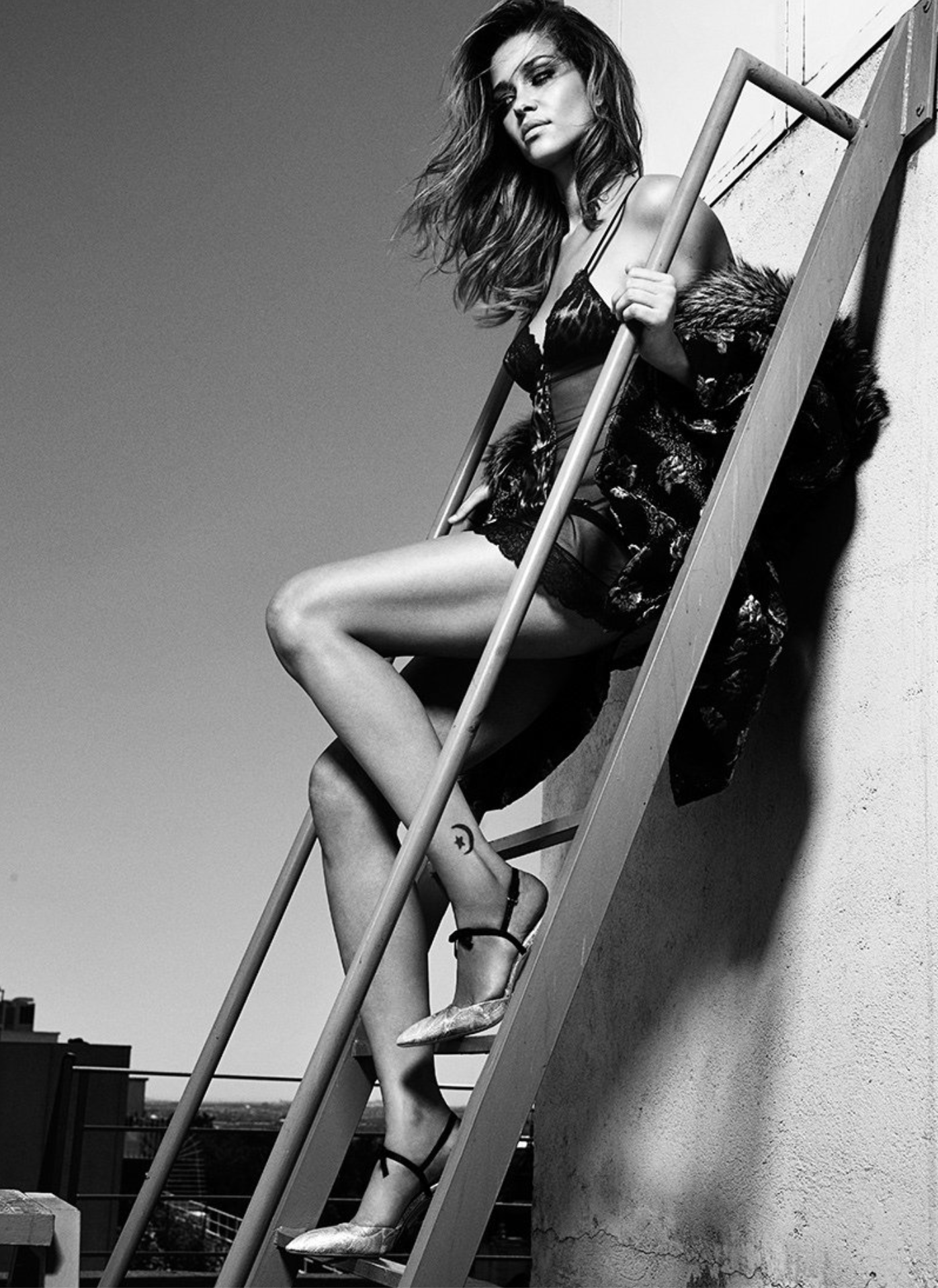 Model Ana Beatriz Barros wears Intimissimi lingerie mixed with outerwear by stylist Marta Lasierra in ‘Ana on Top’. Richard Ramos captures the sensual Ana against an industrial backdrop for Madame Figaro Spain November 2014./ Beauty by Miguel Angel Alvarez
