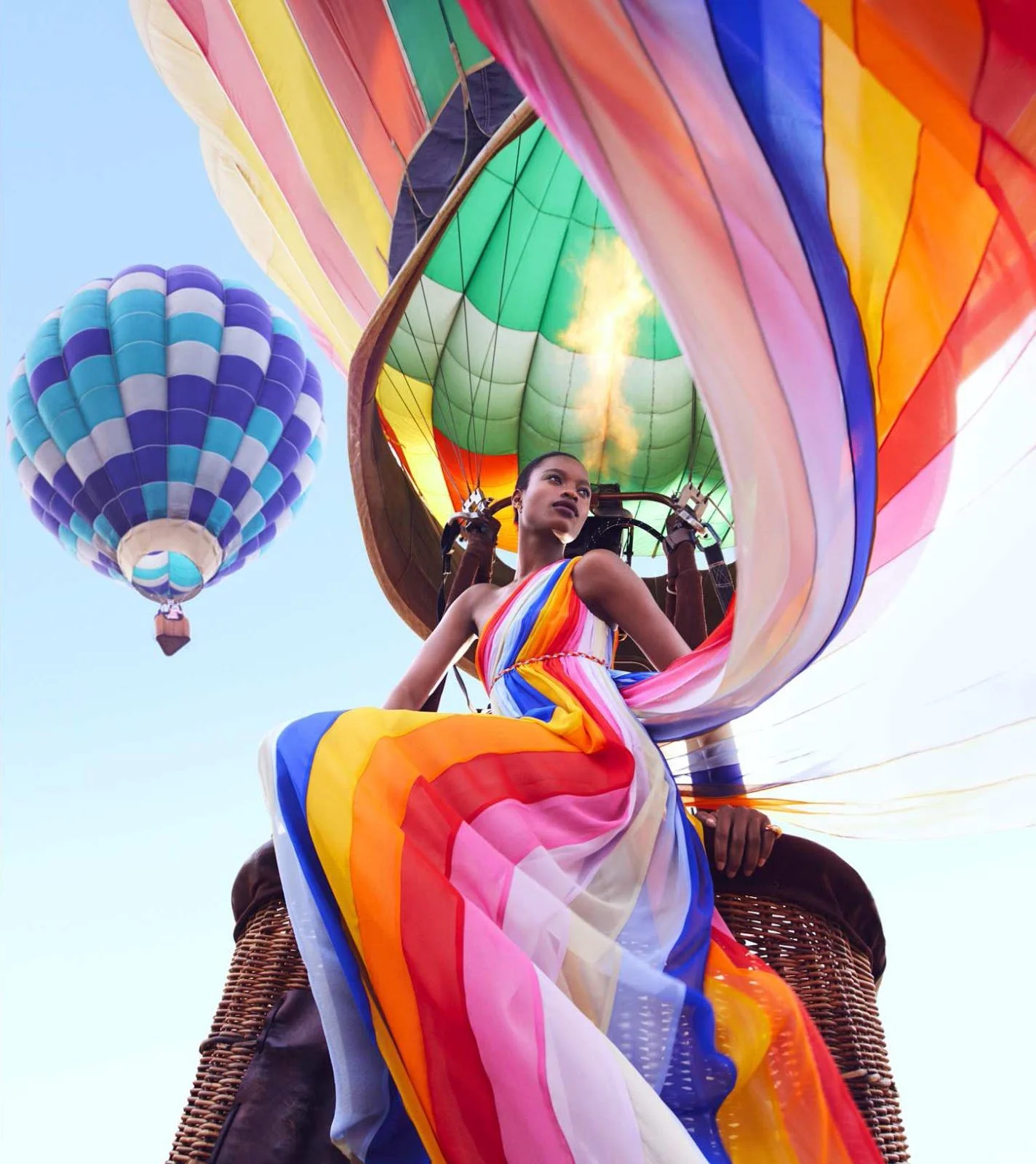 Model Mayowa Nicholas makes a vivid impression in ‘Brights Right Now’, styled for takeoff by Charles Varenne. Photographer Alexi Lubomirski captures this visual delight for Harper’s Bazaar US November 2018./ Hair by Ben Skervin; makeup by Hung Vanngo