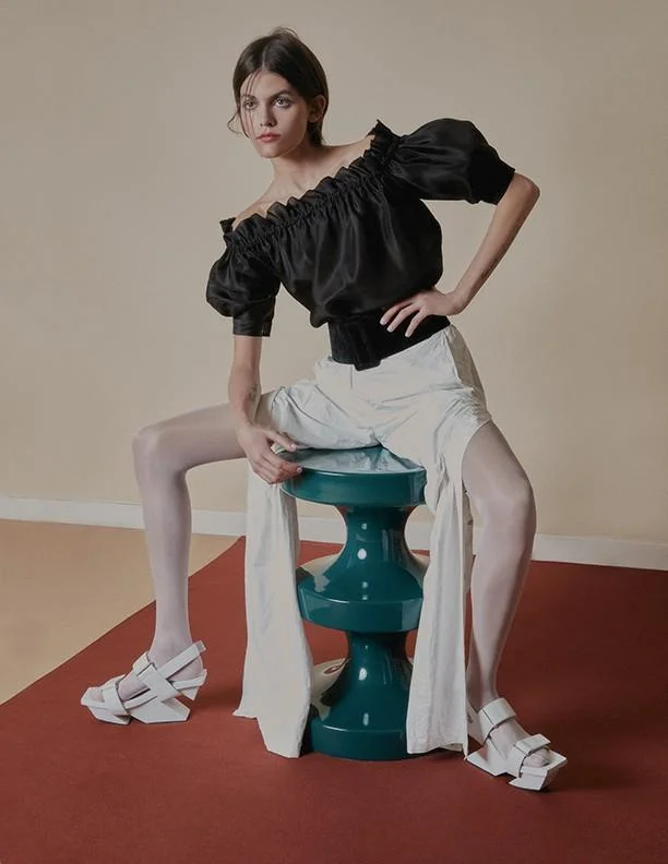 Model Melissa Stasiuk is lensed by Virgile Reboul in 'Living Room Ballet' for Schön Magazine May 2017./ Hair by Yuji Okuda; makeup by Michelle Rainer