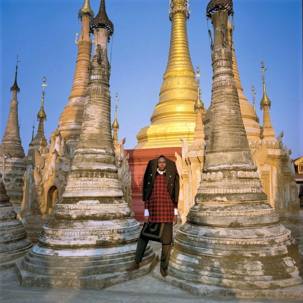 /Top model Alek Wek travels to Myanmar with stylist Vanessa Reid and photographer MIchal Chelbin. Reid chooses dresses paired with pants, corsets with shirting, and other textural layers from the 2019 pre-fall collections, modeled by Wek for T Magazine May 2019.