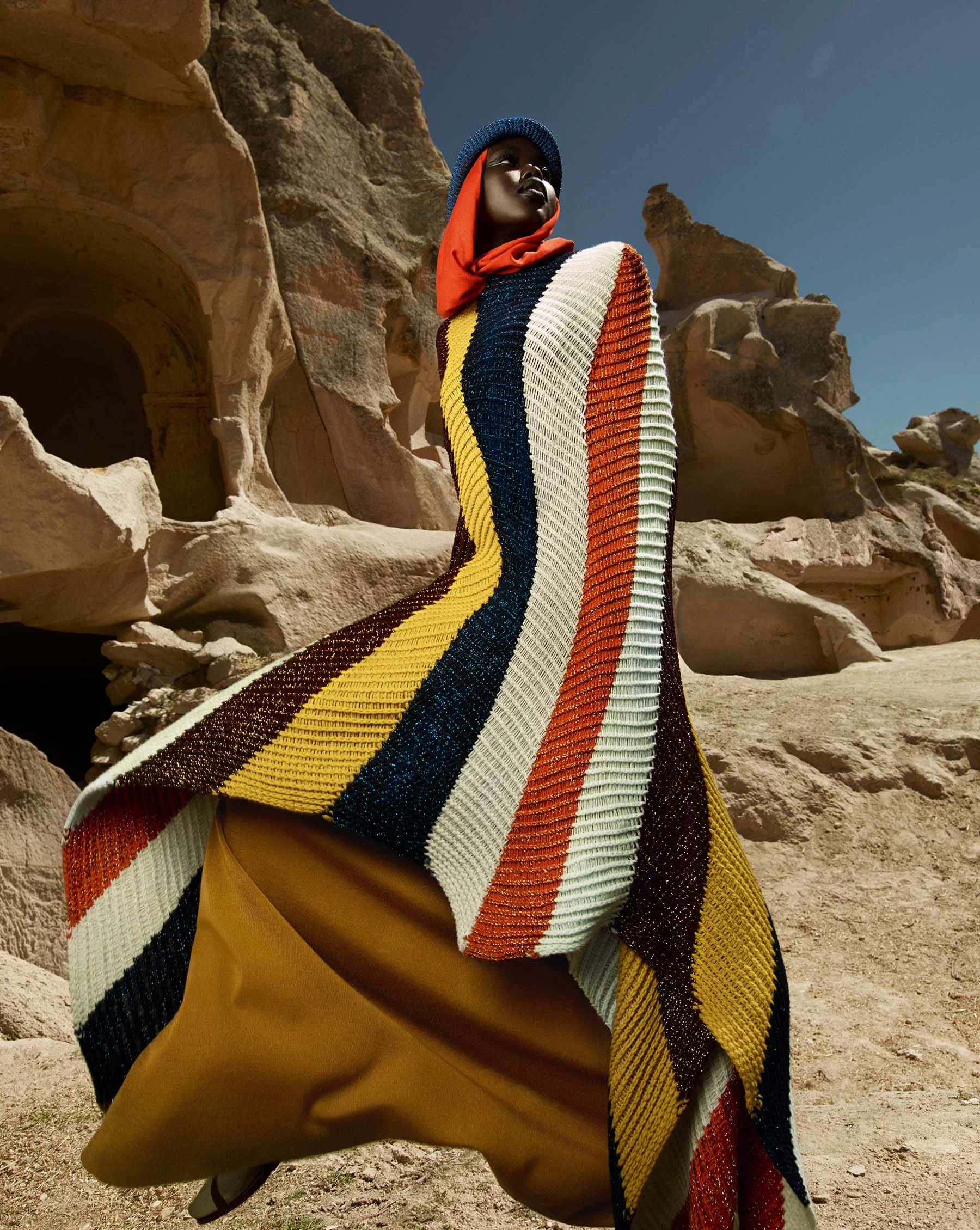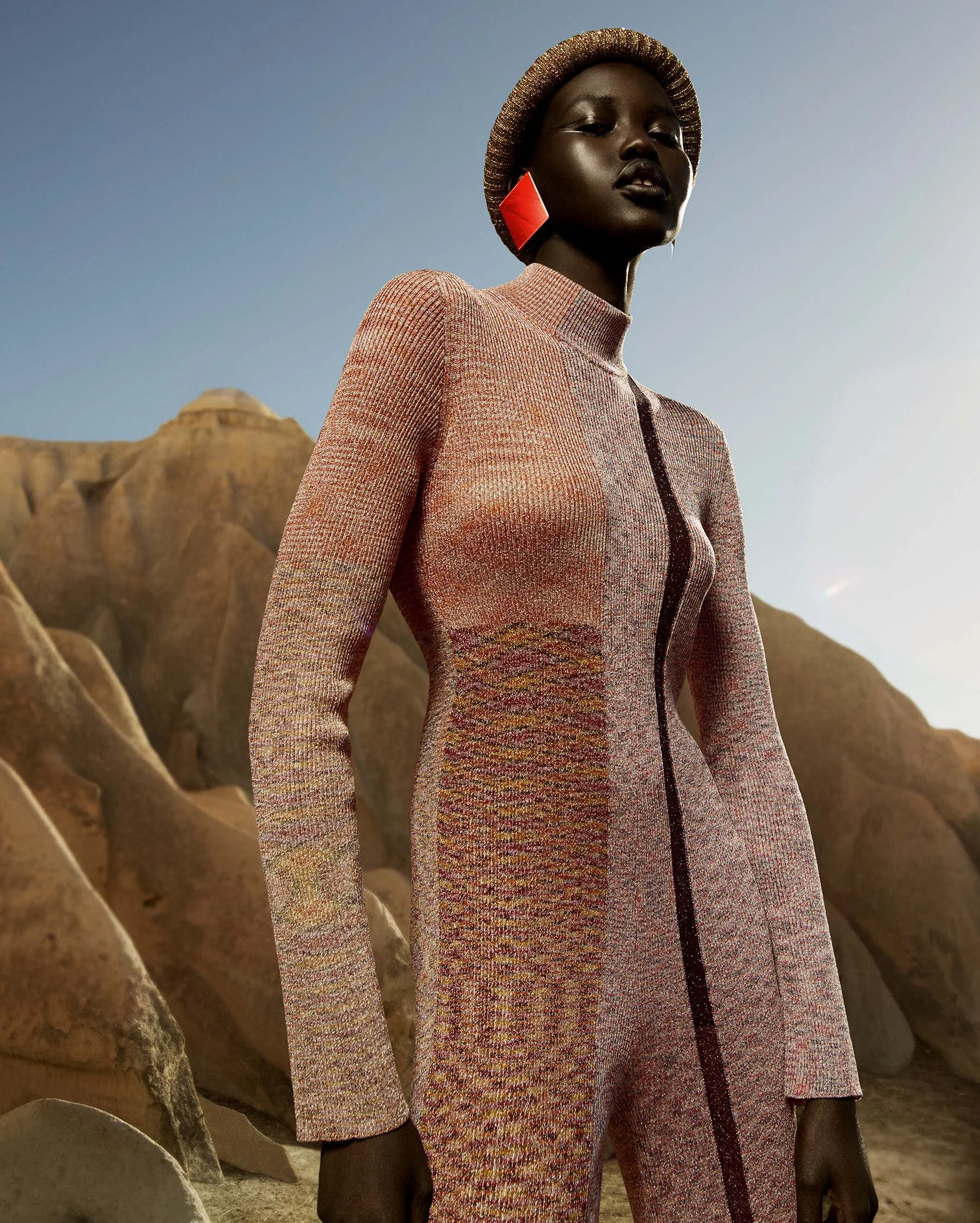 Models Adut Akech, Alton Mason, Bella Hadid and Dong Su Moo are styled by Vanessa Reid in Missoni’s Fall Winter 2019-20 Campaign lesed by Mert & Marcus. / Makeup by Holly Silius; hair by Cyndia Harvey