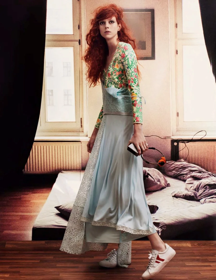 /Model Natalie Westling is styled by Grace Coddington in 'Urban Legend', lensed by Craig McDean for Vogue UK April 2018./ Hair by Julien D'ys; makeup by Diane Kendal