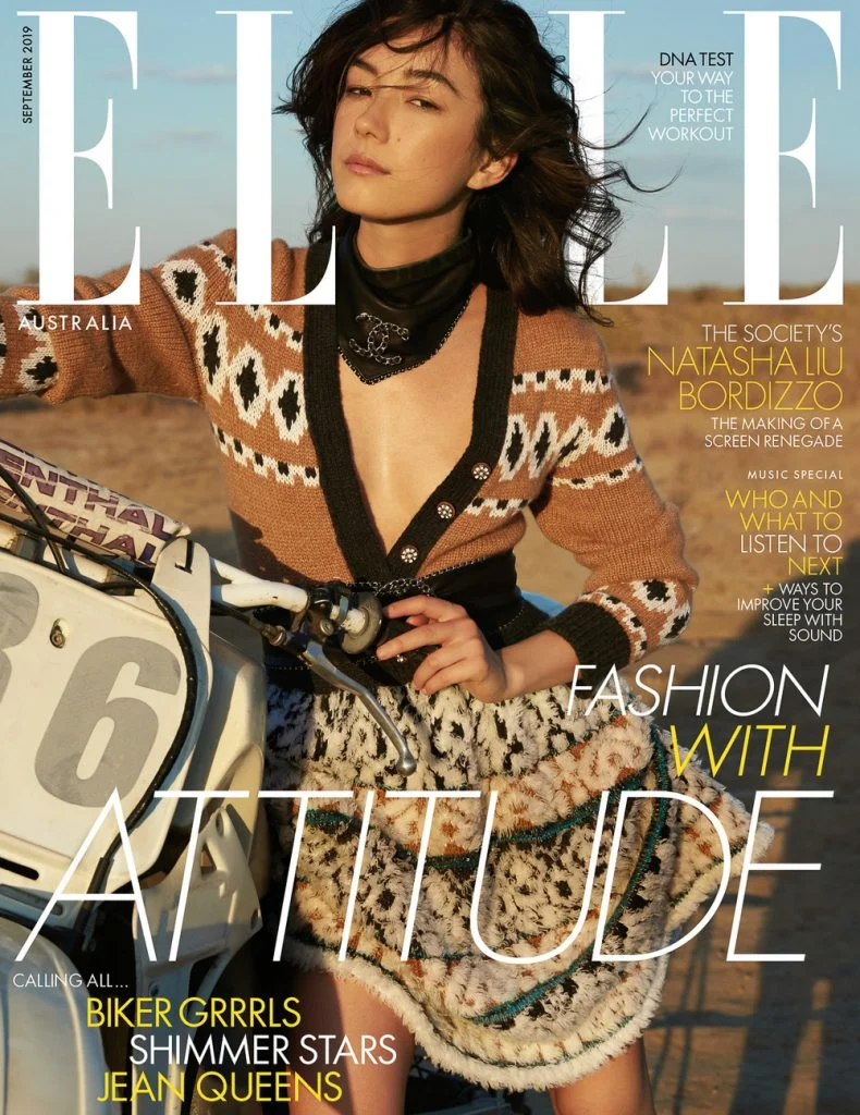 /Actor and model Natasha Liu Bordizzo is styled by Naomi Smith in biker chic images by Sylve Colless for ELLE Australia’s September 2019 cover story.