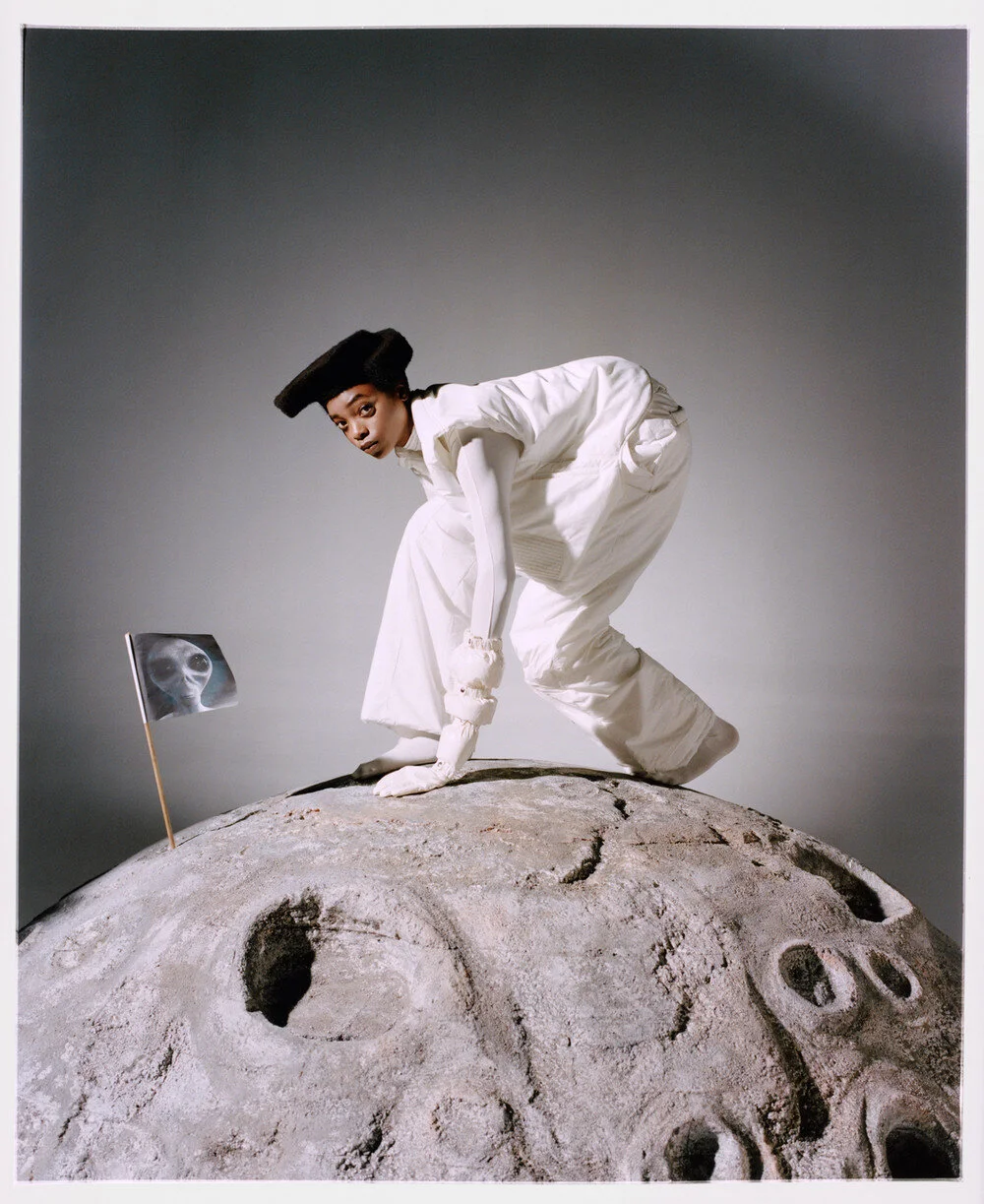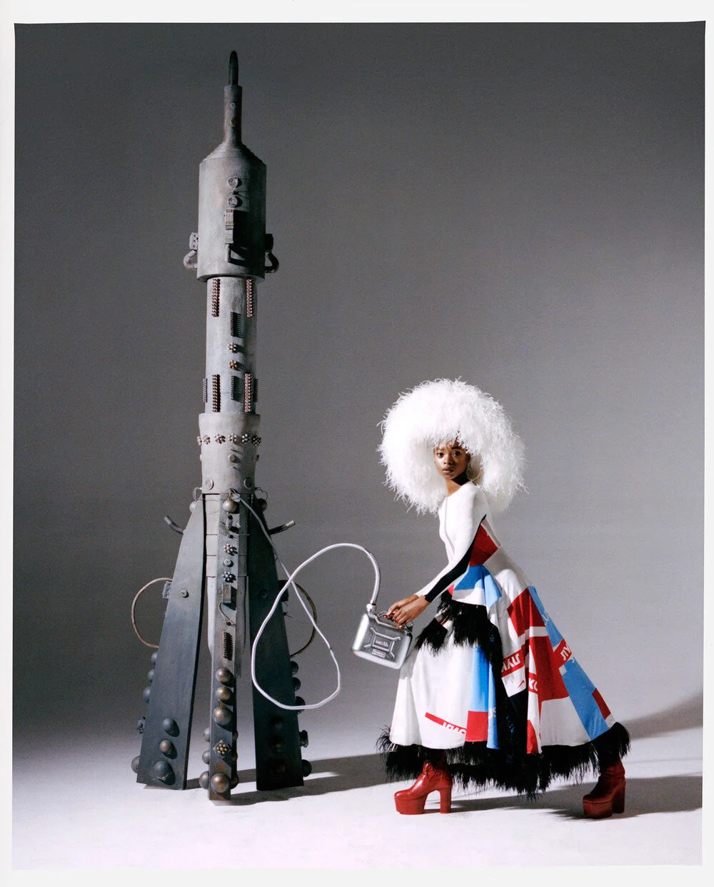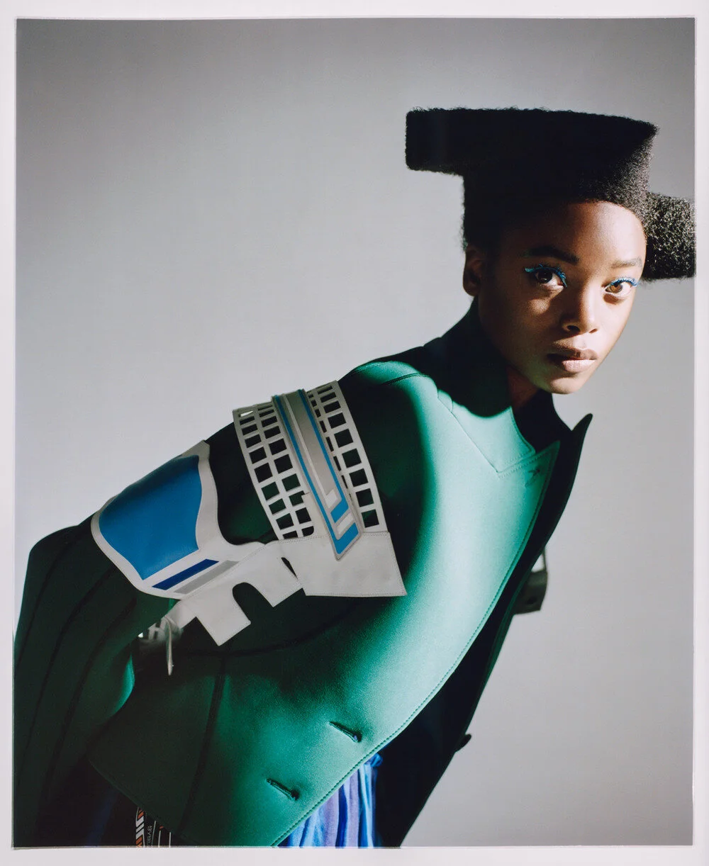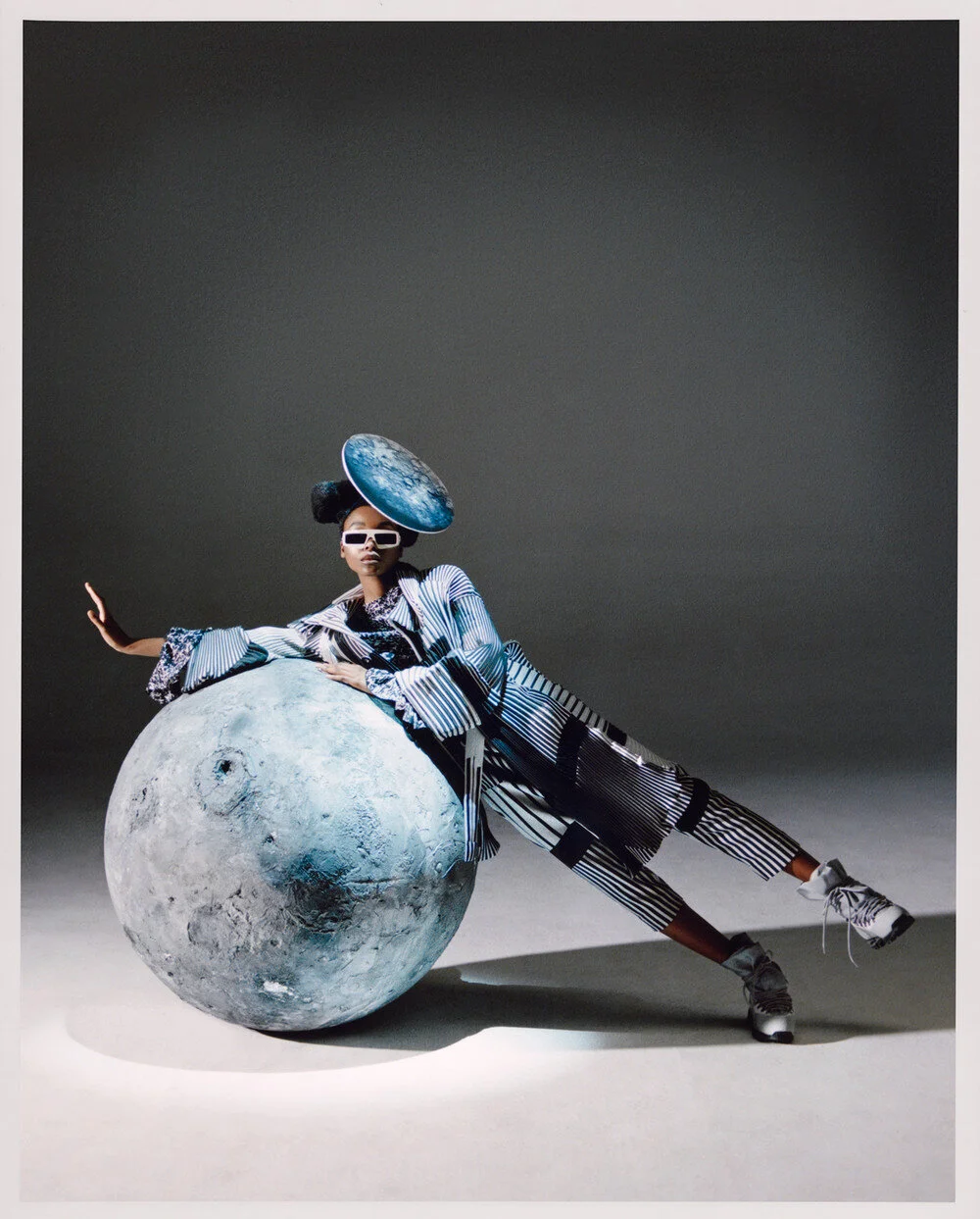 /Model Olivia Anakwe is styled by Karolina Gruszecka in ‘Fly Me To The Moon’, a futuristic fashion story lensed by Marcin Kempski for Mixte Magazine’s FW Winter 2019 issue.