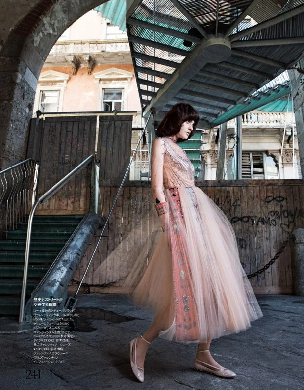 /Model Serena Archetti is styled by Keiko Hitosuyama wearing Valentino, Fendi, Roberto Cavalli, Gucci, Prada and more. Photographer Oskar Cecere flashes Serena in Paris for Elle Japan November 2016.