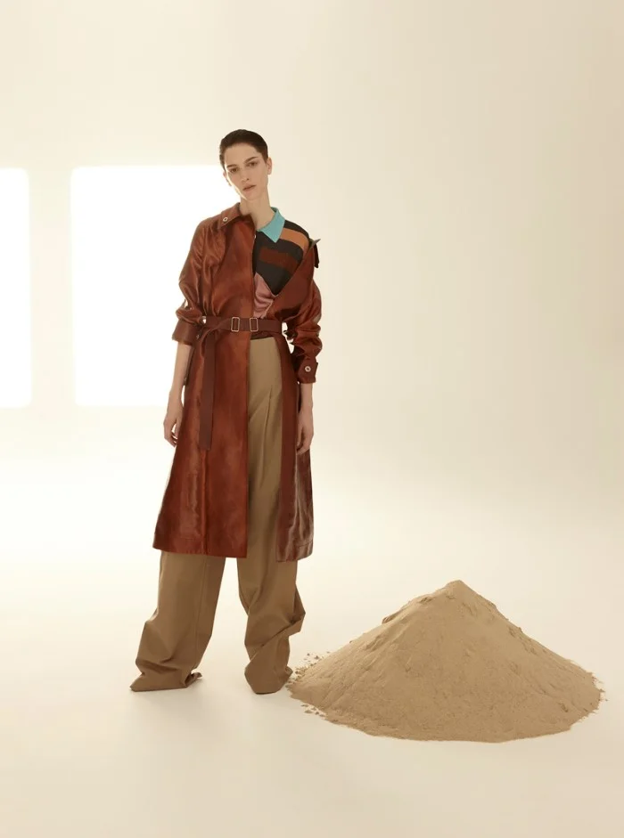 Model Ros Georgiou is styled by Laura Seganti in modern utilitarian looks in neutral colors. Photographer Nagi Sakai is in the studio for Marie Claire Italy March 2017./ Hair by Tetsuya Yamakata; makeup by Charlotte Day