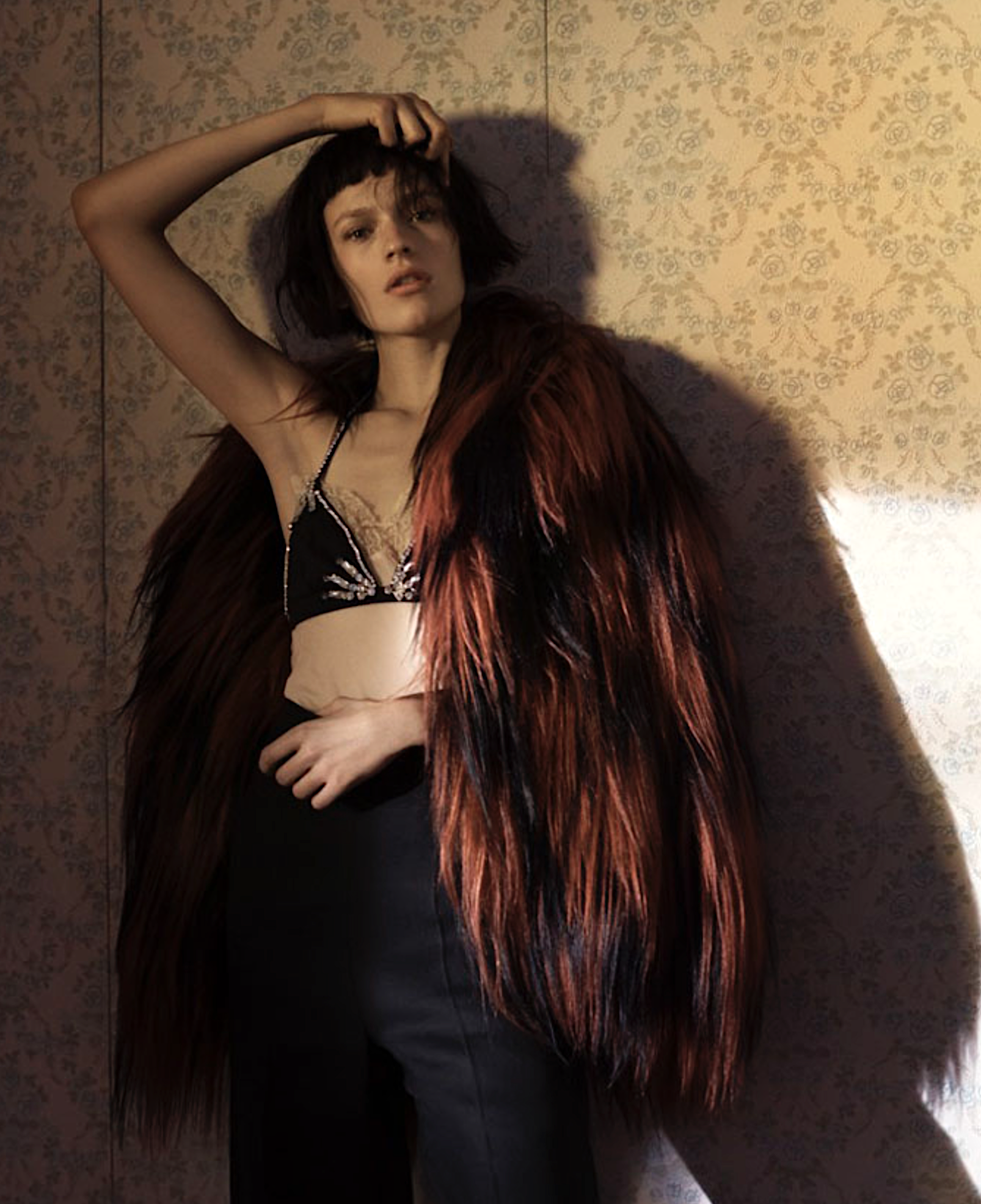 Bloomsbury looks get a modern update as model Sophia Ahrens mixes feathers with clean sartorial looks styled by Lucinda Chambers. Photographer Josh Olins flashes Sophia in ‘Before Sunset’ for Vogue UK’s July issue./ Makeup by Sally Branka; hair by Shon