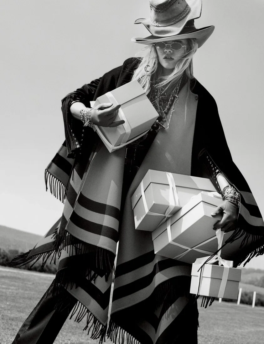 /Supermodel Karlie Kloss busts out the big blue boxes and her cowboy boots two hours deep into the British countryside. Kloss is now a veteran of not only the modeling world, but the unruly frontier of social media. In yet another article on models getting dissed by the Internet populace, W Magazine writes that Karlie has gotten remarkably thick skinned over the last 10 years.