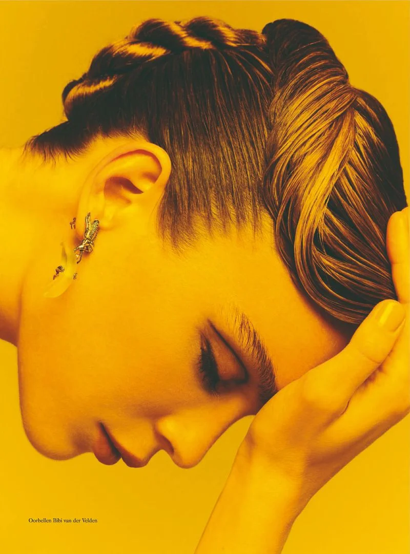 Model Kim Noorda is lensed by Tim Verhallen in retro beauty images for Harper's Bazaar Netherlands July 2018./ Makeup by Anita Jolles; hair by Daan Kneppers