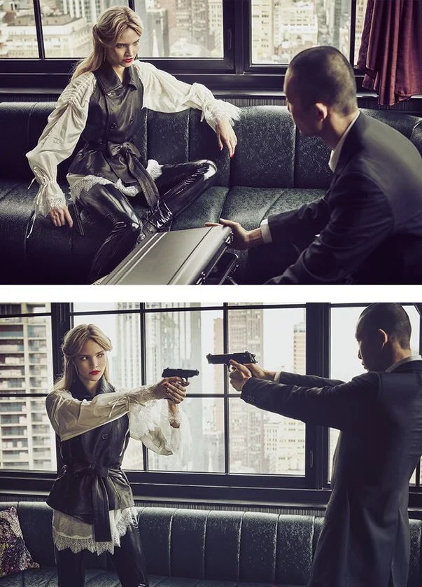 Sasha Luss Plays Her Movie Role Of Russian Assasin 'Anna' In Guy Aroch Images For ELLE Russia