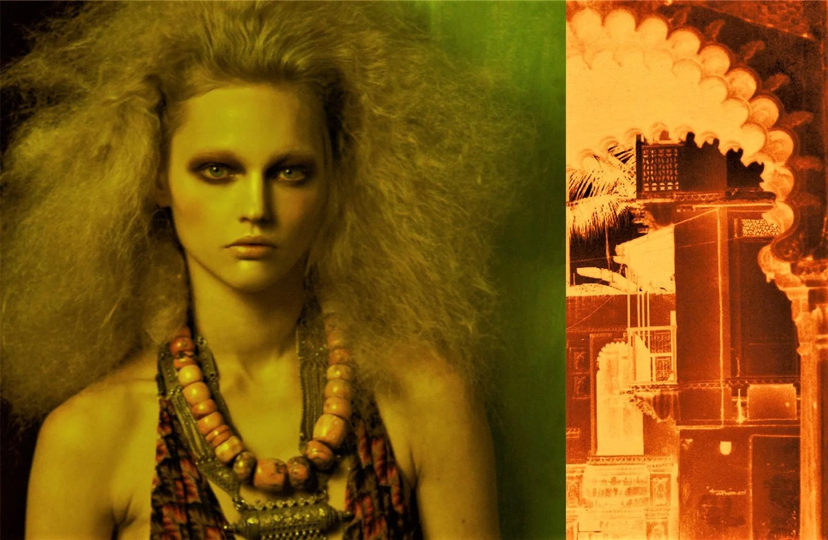/Master photographer Steven Meisel was in North African for the May 2009 issue of Vogue Italia. Models Sasha Pivovarova, Giorgos Tsetis & Pablo Contreras joined him in creating the fashion story Moroccan Holiday. Meisel’s frequent gift of expressing sensuality in an atmospheric and sensual way is prevalent throughout the images styled by Marie-Amélie Sauvé./ Makeup by Pat McGrath; hair by Guido