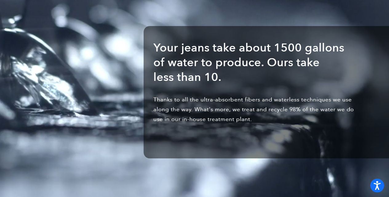 In 2017, Sourcing Journal’s ‘Rivet’ published a series ‘Ladies of Denim’ with DL1961’s creative director Sarah Ahmed. Ahmed was bearing down on reducing water in 2017. This area of major accomplishment is front and center on the DL 1961 website, with its MAJOR focus on sustainability, where DL1961 reminds us that the average pair of jeans take about 1500 gallons of water to produce. Their jeans take less than 10 gallons.