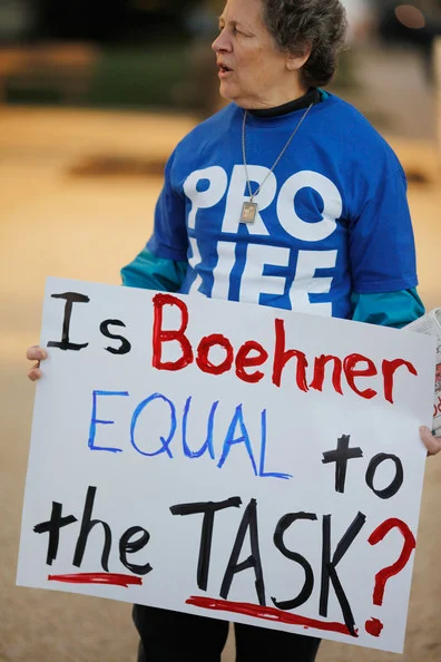 /One of a handful of anti-abortion demonstrators stands outside the Cannon House Office Building on Capitol Hill November 5, 2010 in Washington, DC. The demonstrators demanded that House Minority Leader John Boehner (R-OH), the presumed speaker of the House, pass aggressive anti-abortion legislation or they will find candidates to challenge the Republican leaders in the next primary elections. (November 4, 2010 - Photo by Chip Somodevilla/Getty Images South America)
