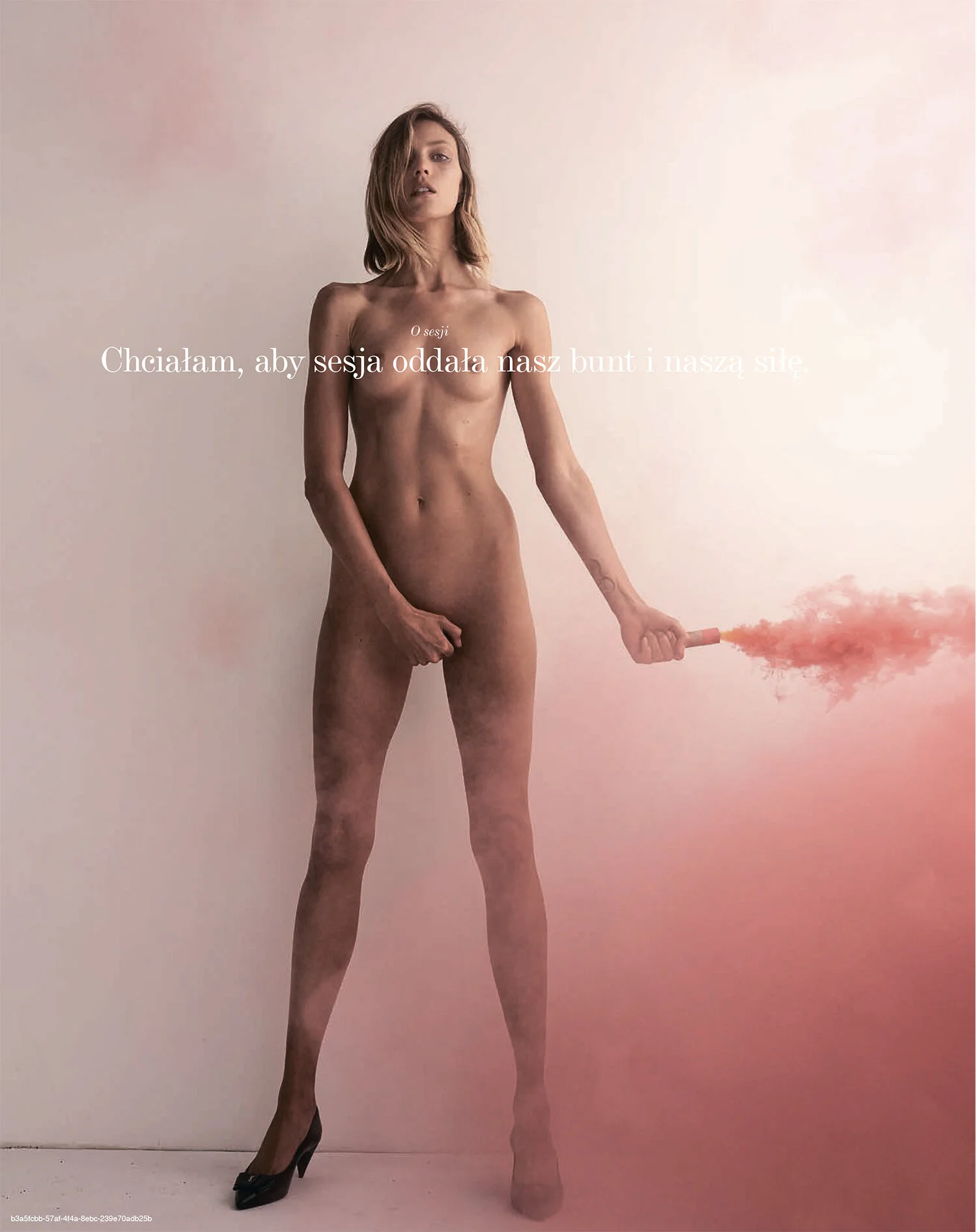 Anja Rubik is very courageous to speak to publicly and use her body to make this political statement in the December 2020 pages of Vogue Poland. Having been in police protection myself for a year, after speaking out on abortion rights, I know that Anja is taking a much bigger risk than the one that put me in the crosshairs of a crazed man determined to kill me for my support of Planned Parenthood.